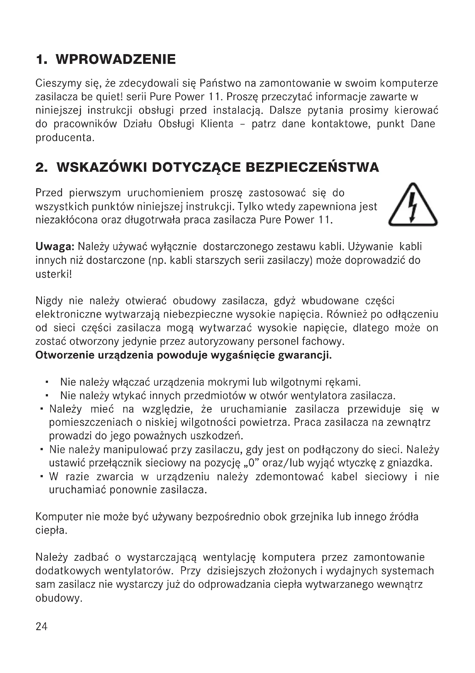 Cieszymy są, są zdecydowali są Państwo na zamontowanie w swoim komputerze zasilacza be quiet! serii Pure Power 11. Proszę przyte są informacje zawarte w niniejszej instrukcji obśgli przy instalacja. Dalsze pytania prosimy kierować do pracowników Dziąu Obśgli Klienta - patrz dane kontaktowe, punkt Dane producenta.