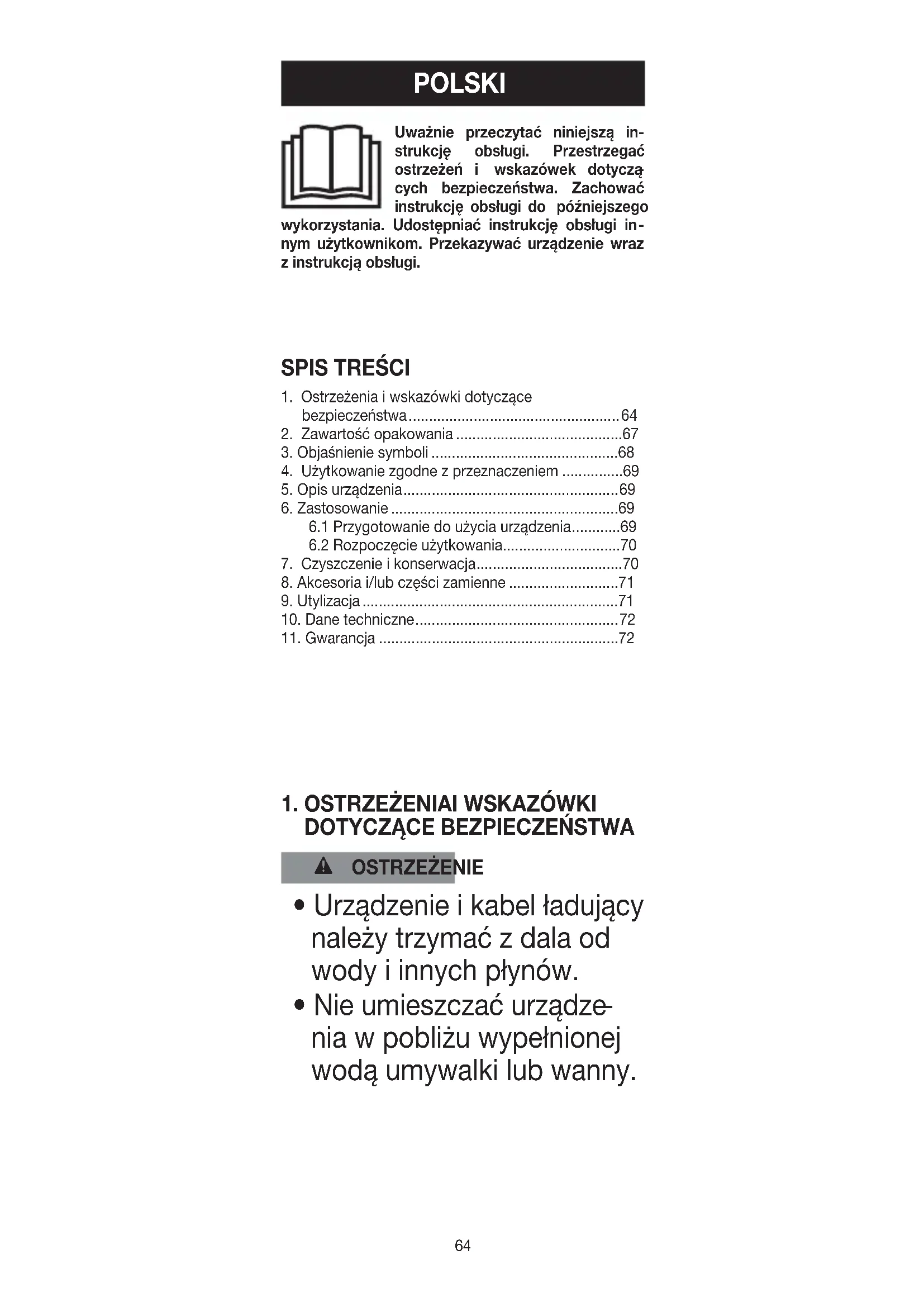 Более подробная информация огарантии игаран- тийных условиях находится в гарантийном талоне, который входит вкомплект поставки. Возможны ошибки иизменения.64 Uważnie przeczytać niniejszą in- strukcję obsługi. Przestrzegać ostrzeżeń i wskazówek dotyczą