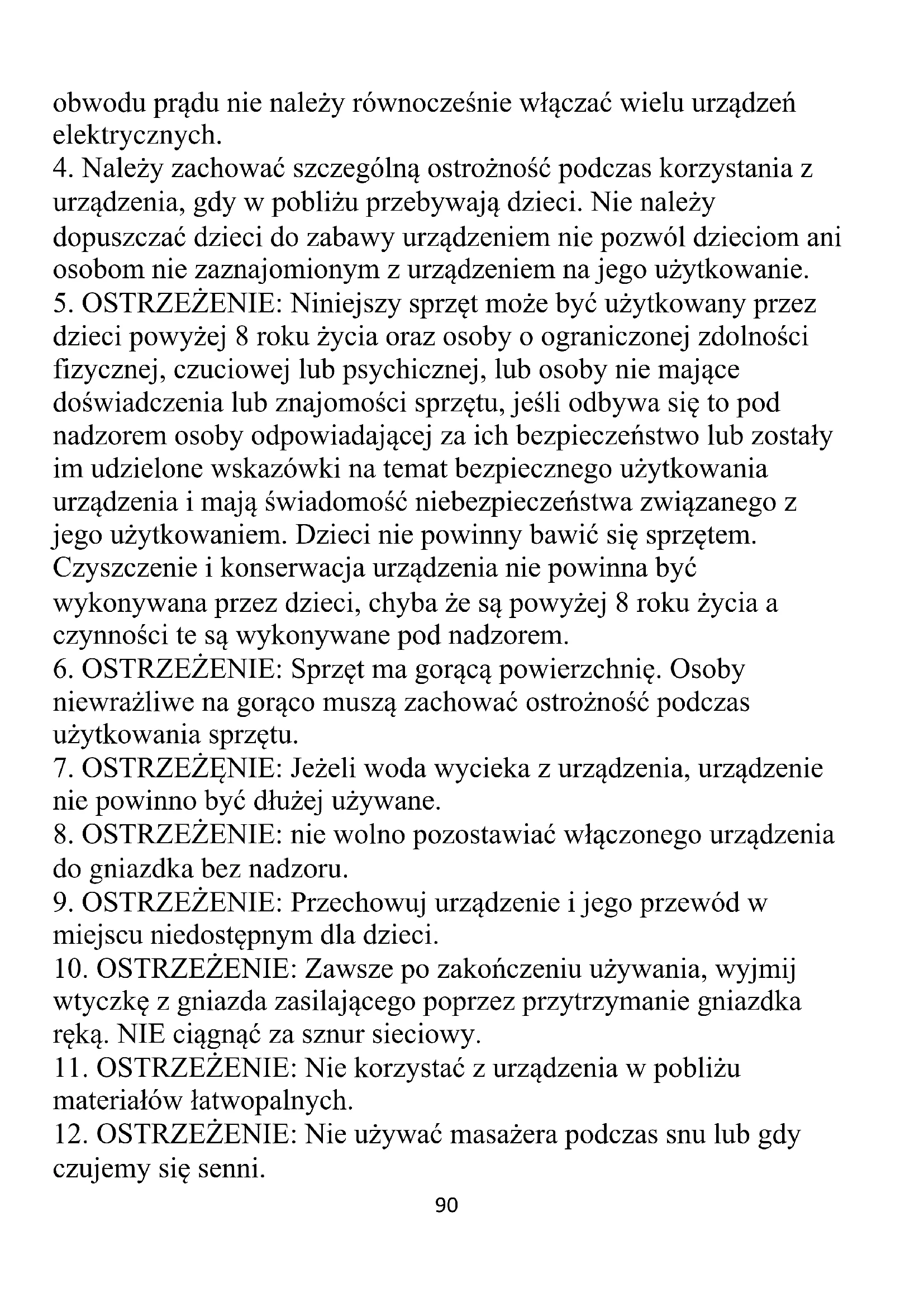 12. OSTRZEŻENIE: Nie używać masażera podczas snu lub gdy