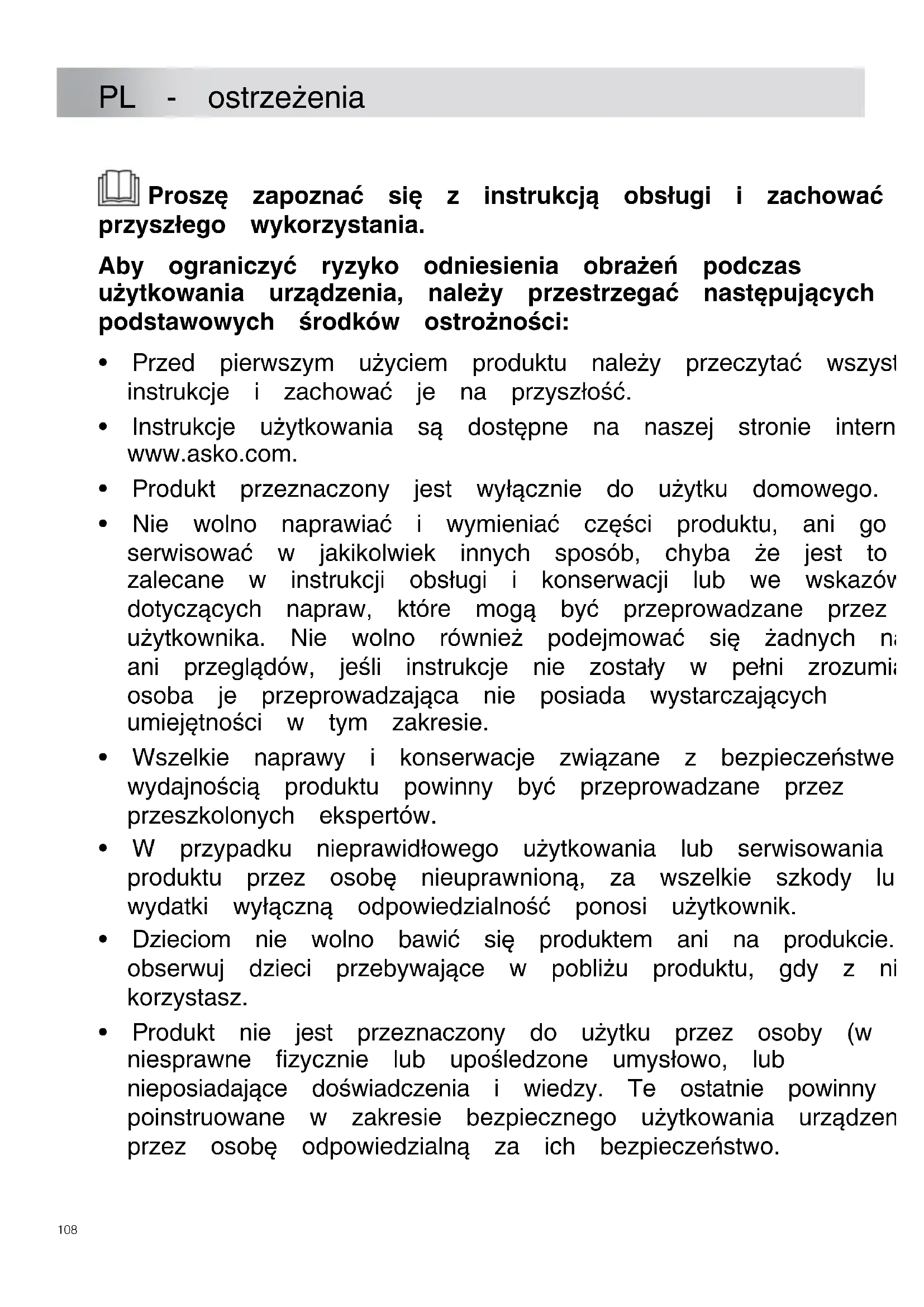 - Instrukcje użytkowania są dostępne na naszej stronie internetowej www.asko.com.