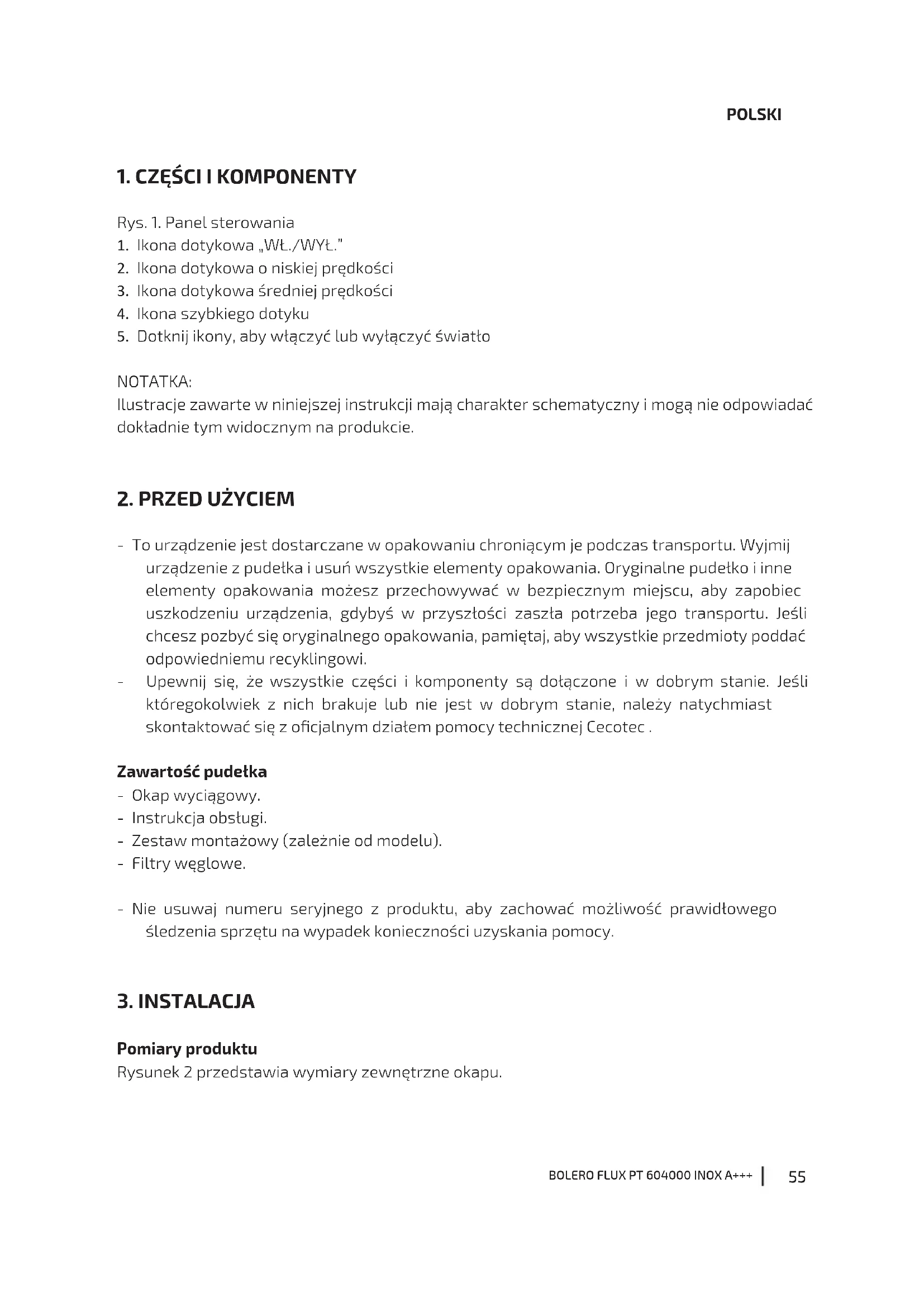 INSTRUKCJA OBSŁUGI Bolero Flux PT 604000 Inox A+++ CECOTEC