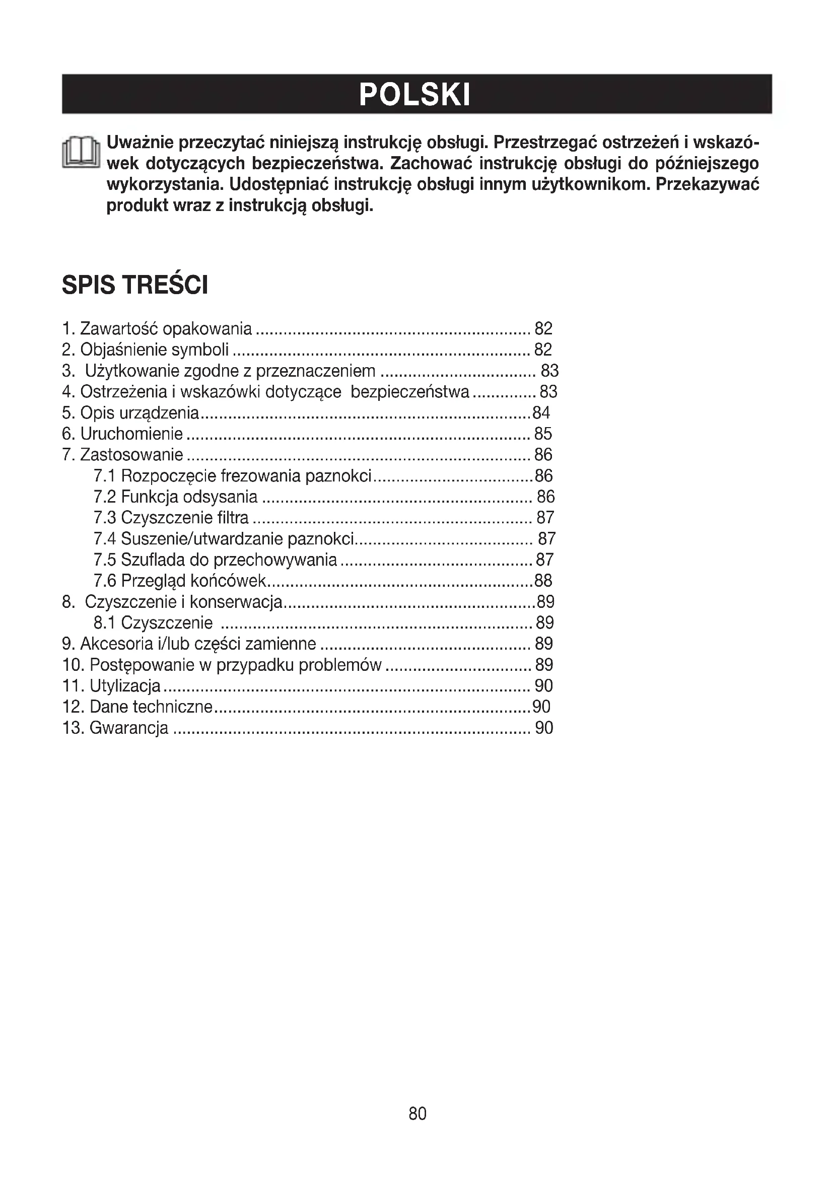 3. Użytkowanie zgodne zprzeznaczeniem .................................. 83