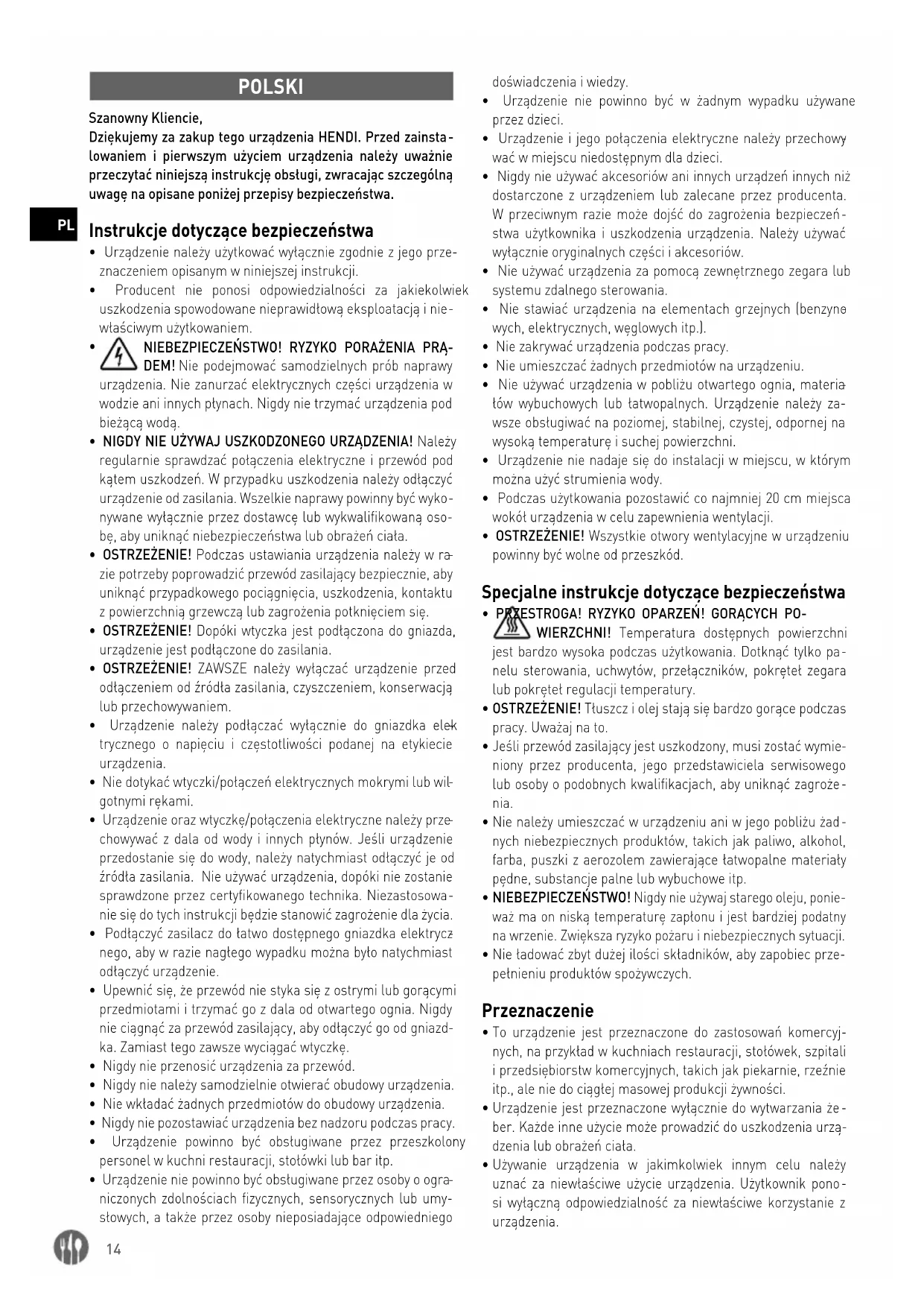 POLSKI Szanowny Kliencie, Dziękujemy za zakup tego urządzenia HENDI. Przed zainsta