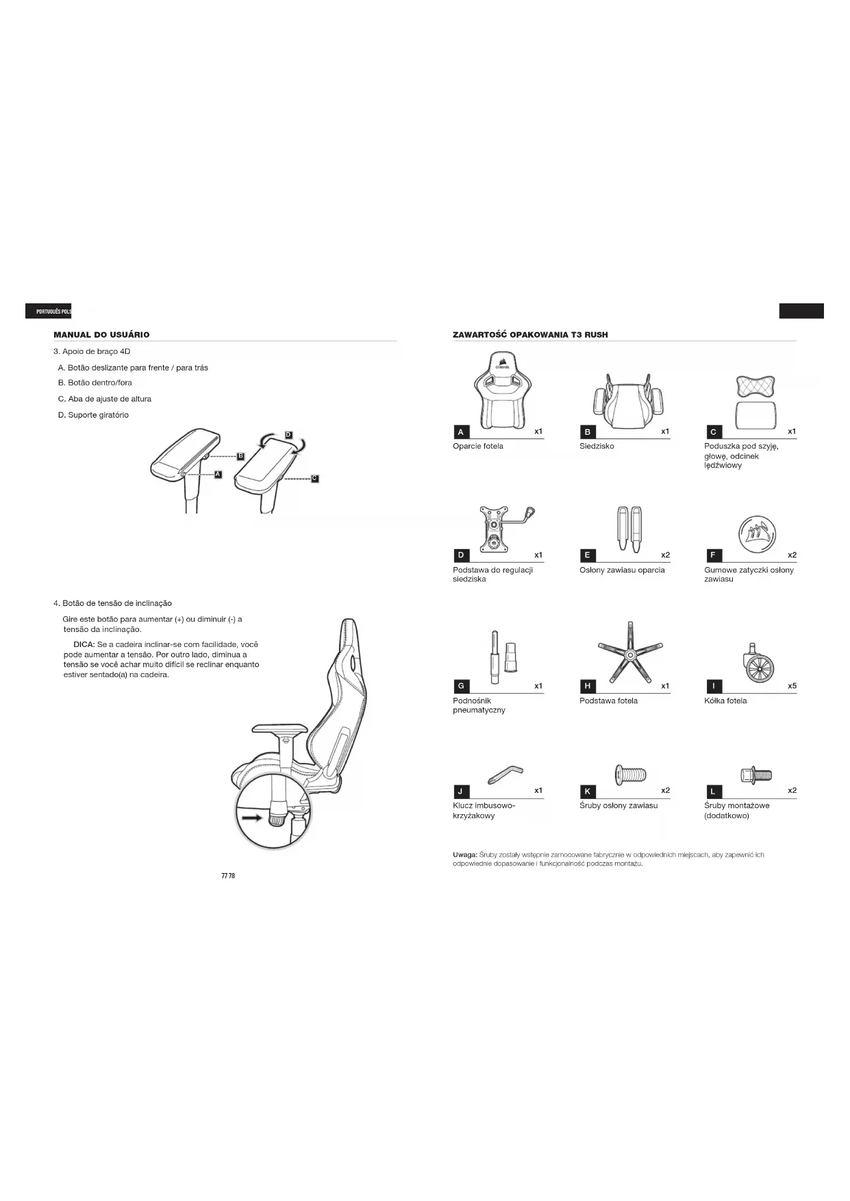INSTRUKCJA MONTAŻU FOTELA T3 RUSH