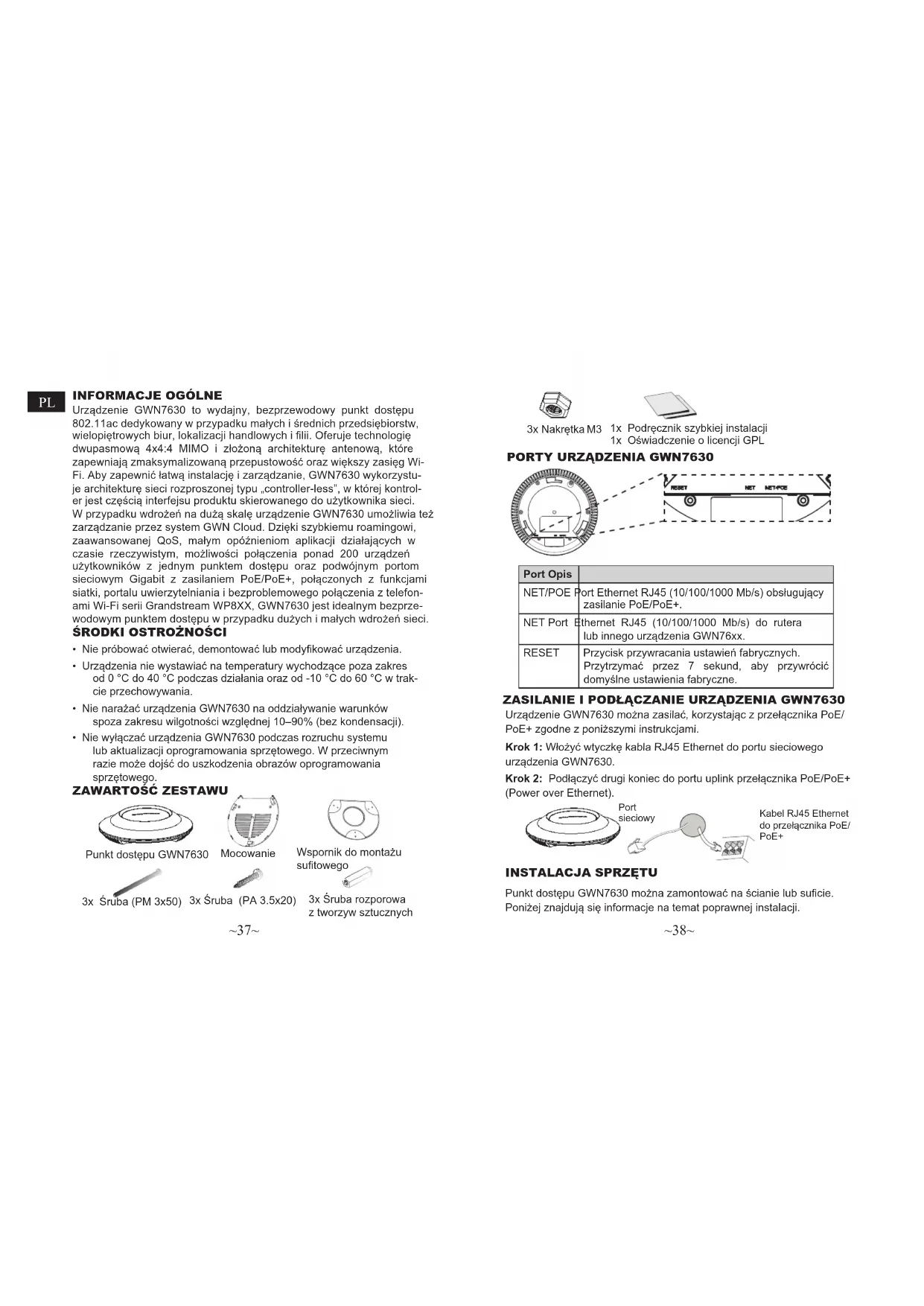 GWN7630 - Punkt dostępu GRANDSTREAM - Bezpłatna instrukcja obsługi