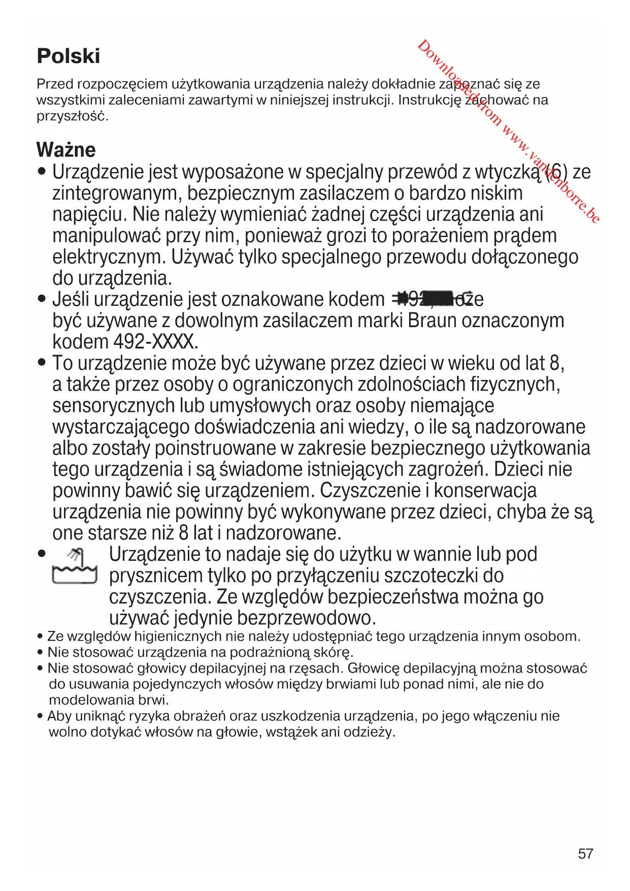 Jeśli urządzenie jest oznakowane kodem 492, może być używane z dowolnym zasilaczem marki Braun oznaczonym kodem 492-XXXX.