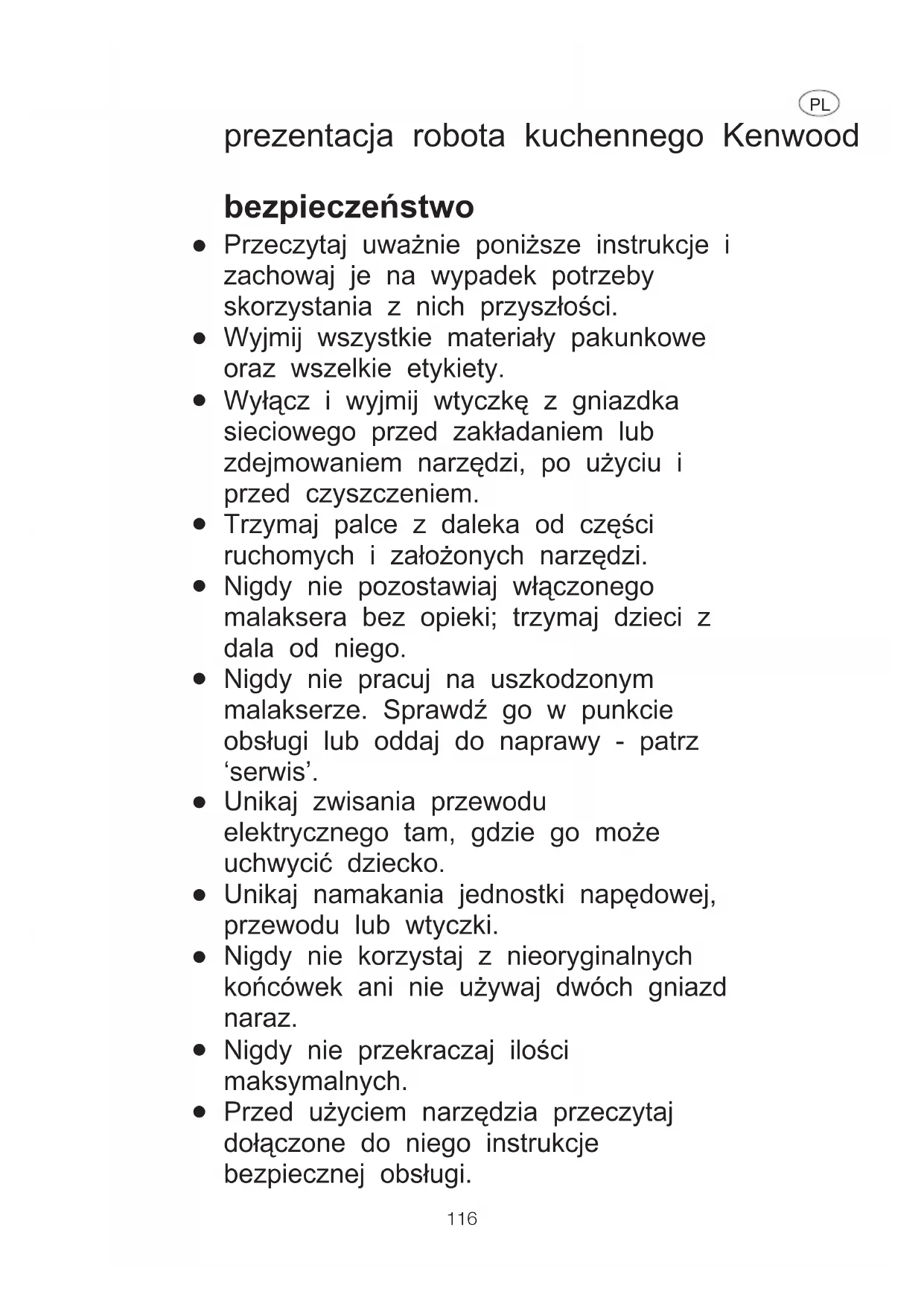 Urządzenie jest przeznaczone wyłącznie do użytku domowego. Firma Kenwood nie ponosi żadnej odpowiedzialności w przypadku niewłaściwego korzystania z urządzenia lub nieprzestrzegania niniejszych instrukcji. 117przed podłączeniem do zasilania