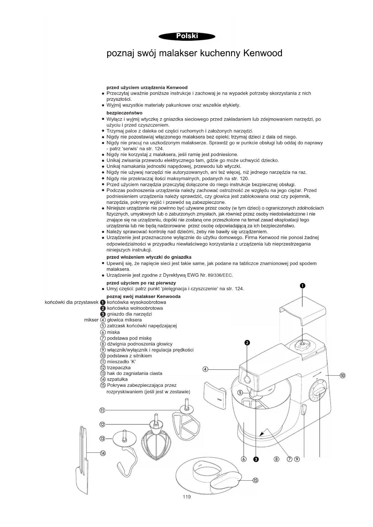 dostëpne narzëdzia i przystawki Aby kupiç narzëdzie nie przewidziane w zestawie, prosimy sië skontaktowaç z punktem us¢ugowym KENWOODA.