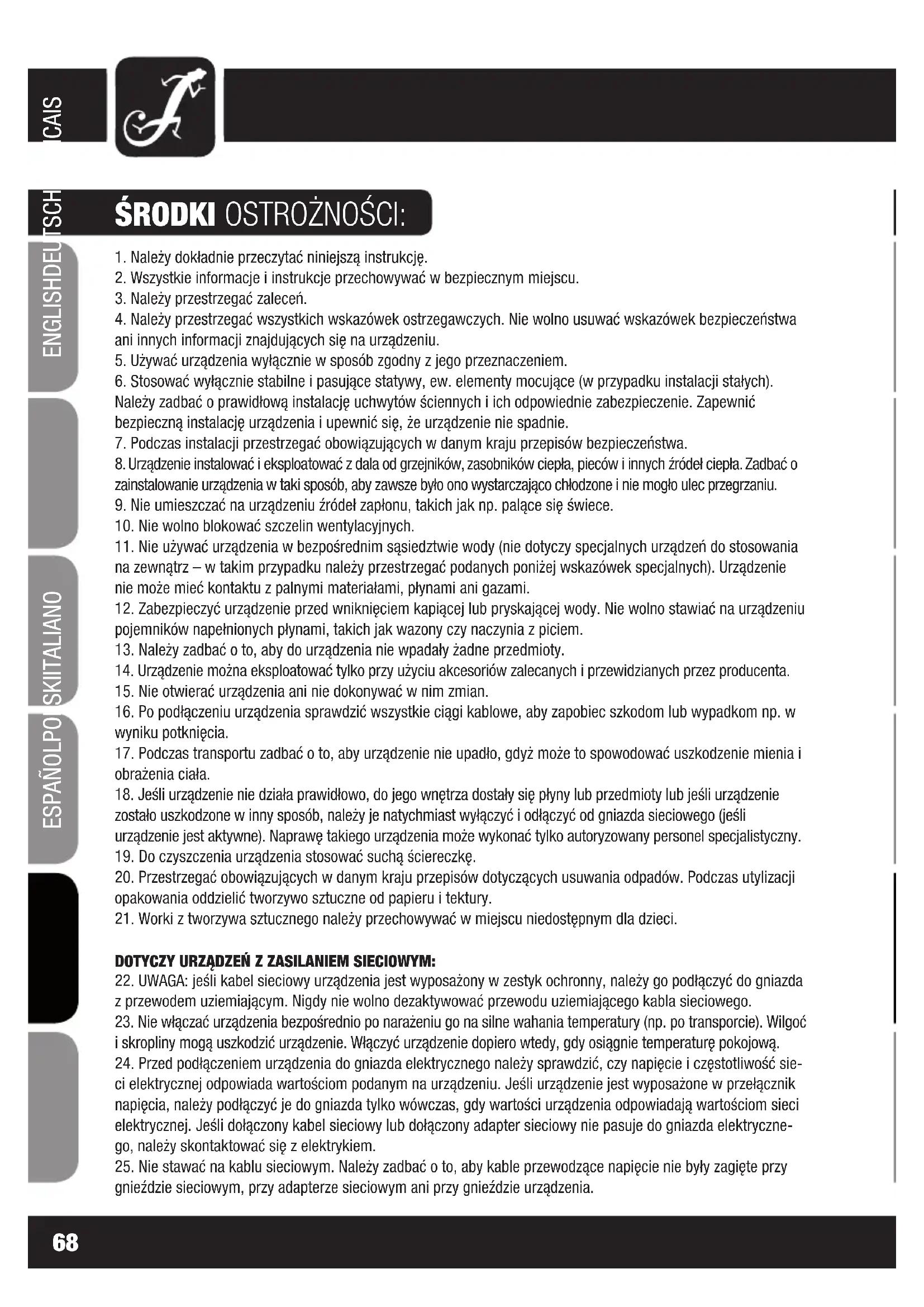 22. UWAGA: jeśli kabel sieciowy urządzenia jest wyposażony w zestyk ochronny, należy go podłączyć do gniazda