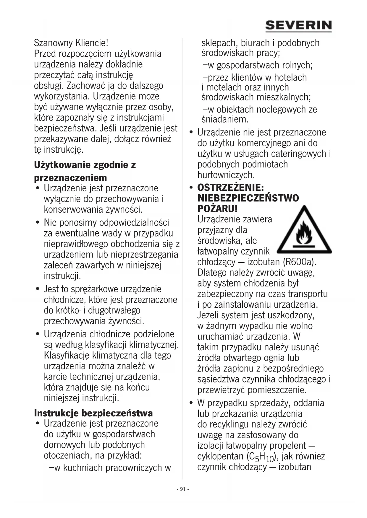 4-stjärnig -18 4 Nej Ljuskällans parametrar: Typ av ljuskälla LED Energieffektivitetsklass F Elektriska data Se märkskylt *) Den faktiska förbrukningen beror på användningen och placeringen av apparaten.- 90 -- 91 - Szanowny Kliencie! Przed rozpoczęciem użytkowania urządzenia należy dokładnie przeczytać całą instrukcję obsługi. Zachować ją do dalszego wykorzystania. Urządzenie może być używane wyłącznie przez osoby, które zapoznały się z instrukcjami bezpieczeństwa. Jeśli urządzenie jest przekazywane dalej, dołącz również tę instrukcję. Użytkowanie zgodnie z przeznaczeniem