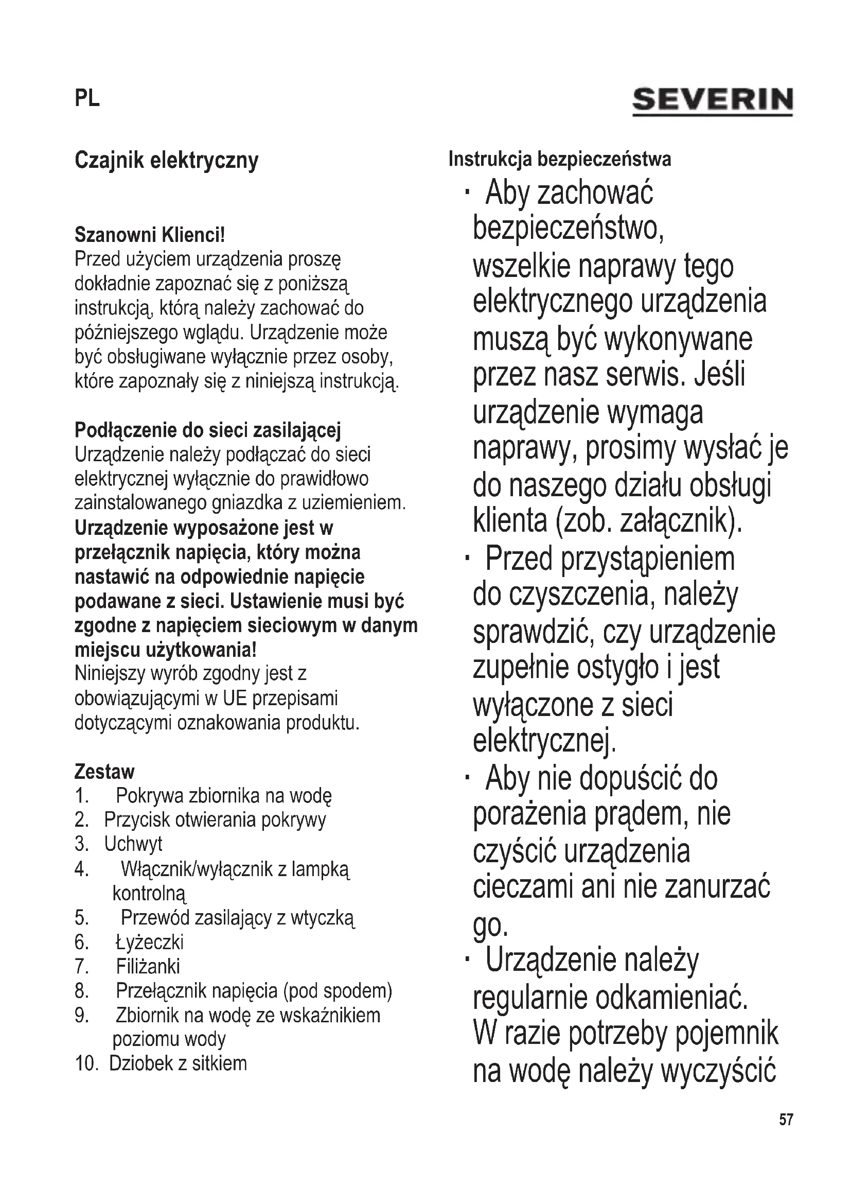 WK 3647 - Czajnik SEVERIN - Bezpłatna instrukcja obsługi