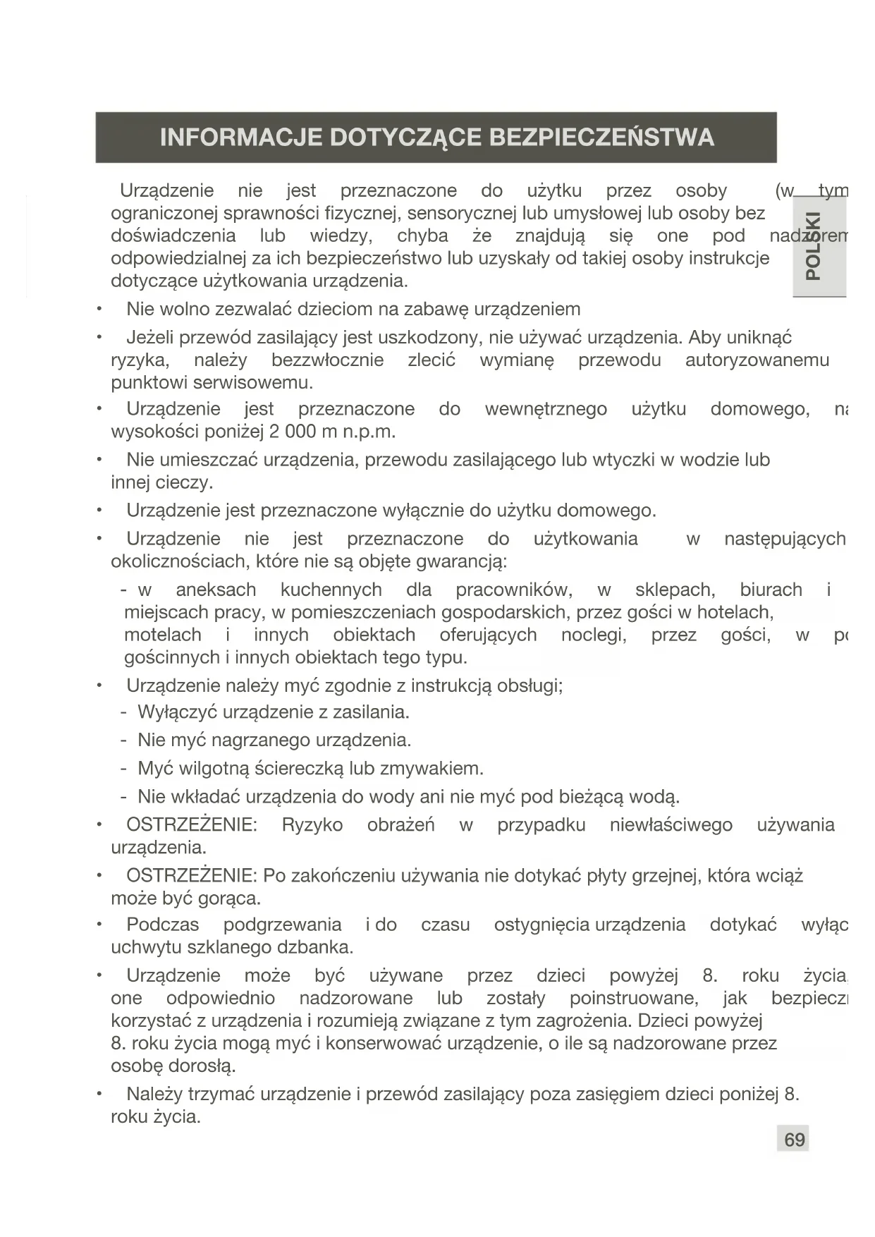 - Podczas podgrzewania ido czasu ostygnięciaurządzenia dotykać wyłącznie uchwytuszklanegodzbanka.