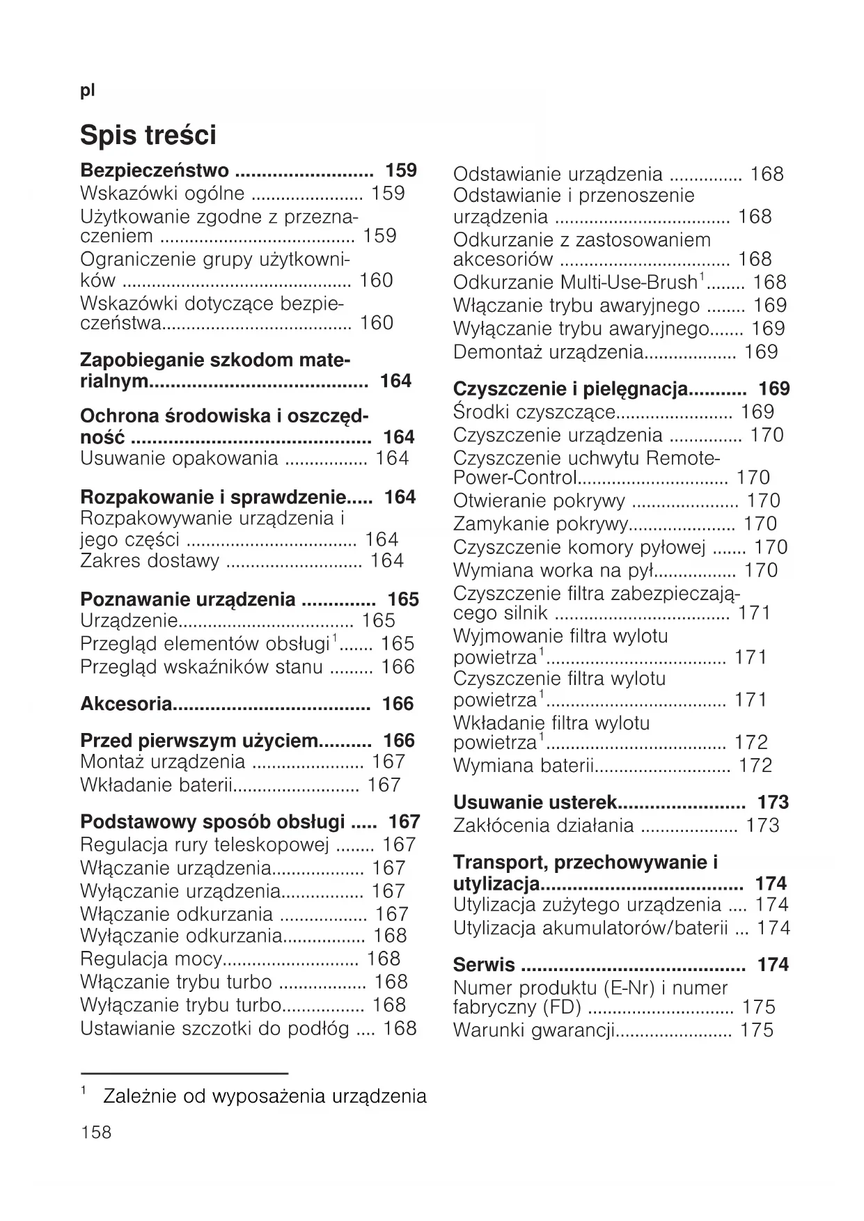 - Utylizacja zużytego urządzenia p. 174