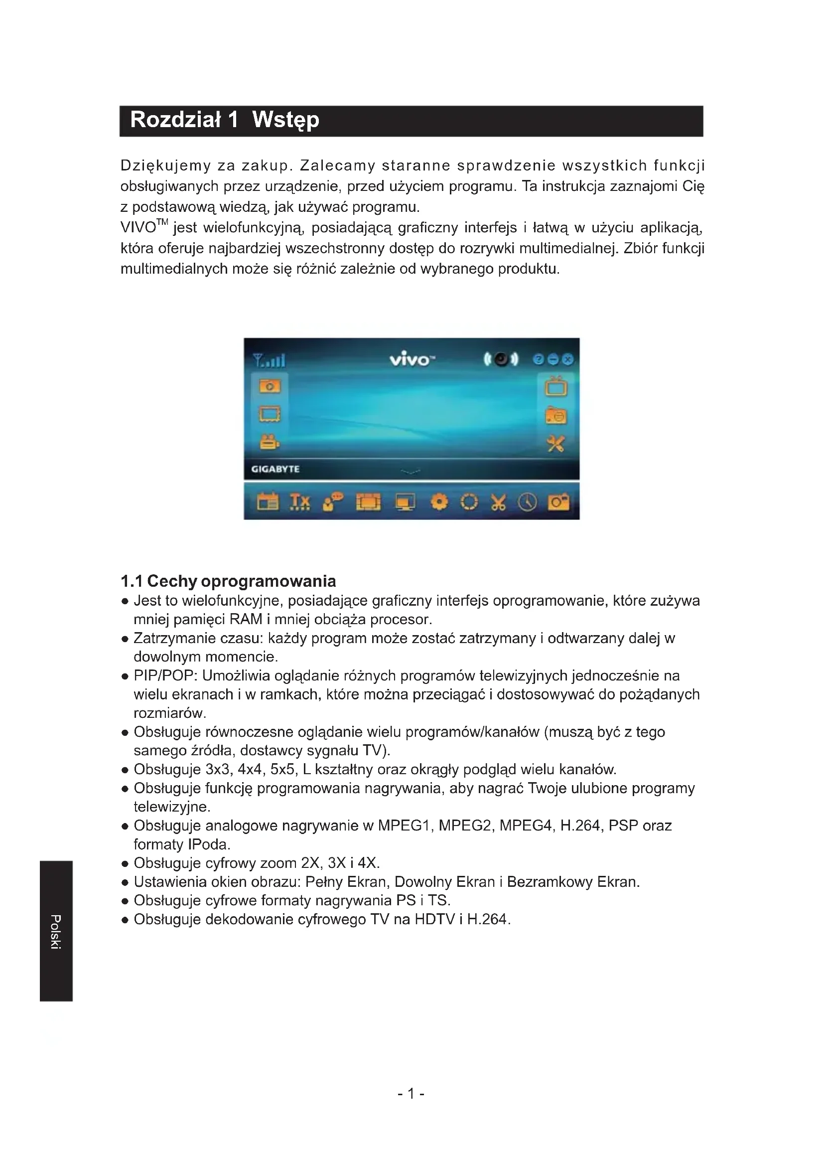 Rozdział 1 Wstęp Dziękujemy za zakup. Zalecamy staranne sprawdzenie wszystkich funkcji obsługiwanych przez urządzenie, przed użyciem programu. Ta instrukcja zaznajomi Cię z podstawową wiedzą, jak używać programu. VIVO