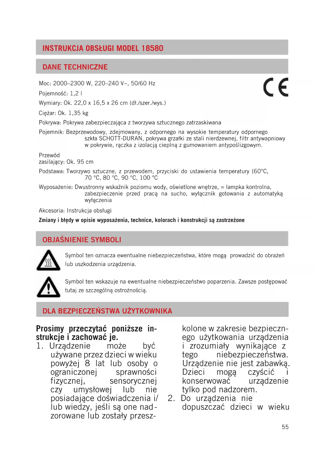 automatycznie, gdy czajnik zdejmie się z podstawy. Gotująca woda może powodować oparzenia. Z tego powodu obchodzić się ostrożnie z urządzeniem, gdy zawiera gorącą wodę.61 WARUNKI GWARANCJI