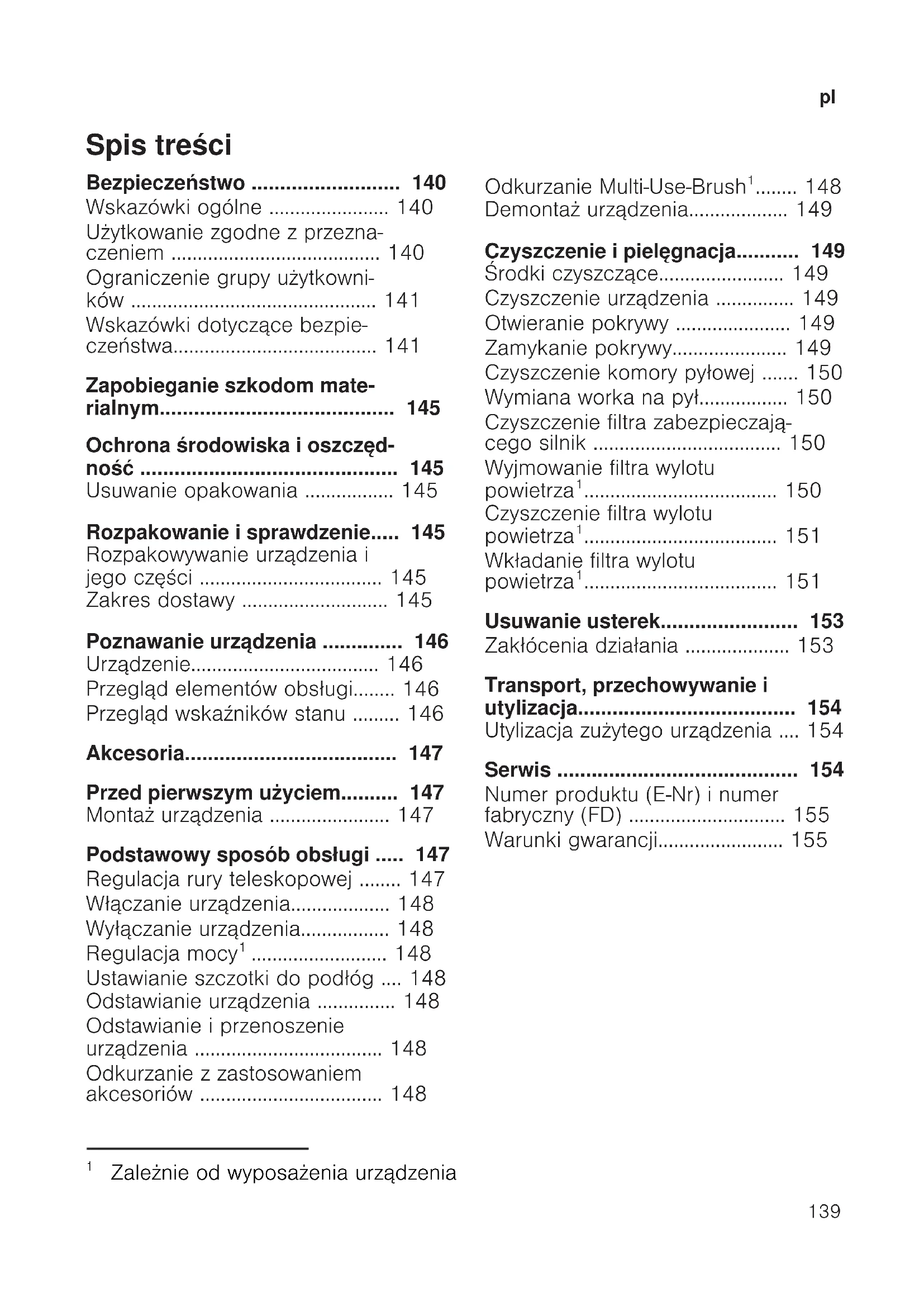 - Utylizacja zużytego urządzenia p. 154