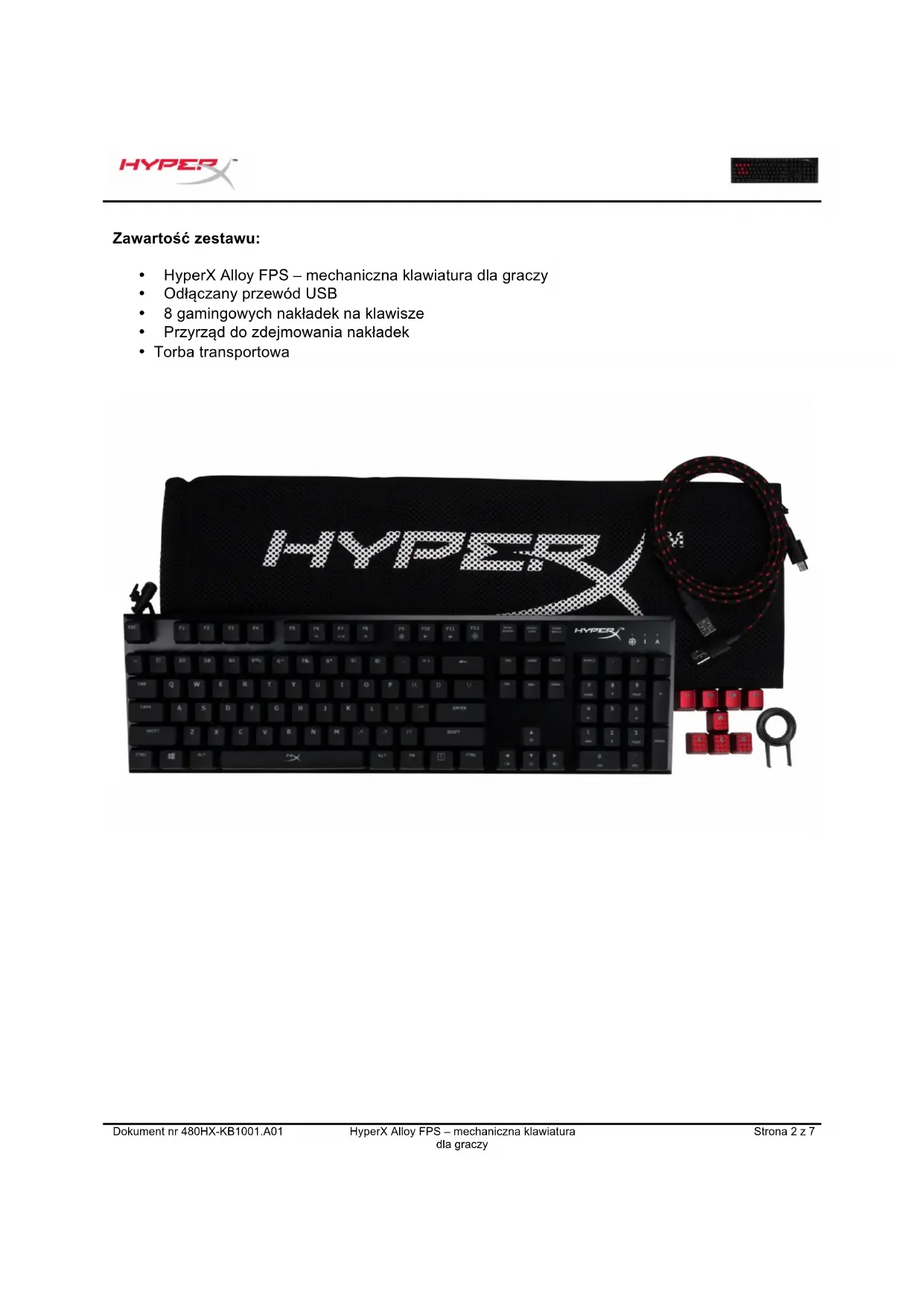 - Torba transportowaDokument nr 480HX-KB1001.A01 HyperX Alloy FPS – mechaniczna klawiatura dla graczy Strona 3 z 7