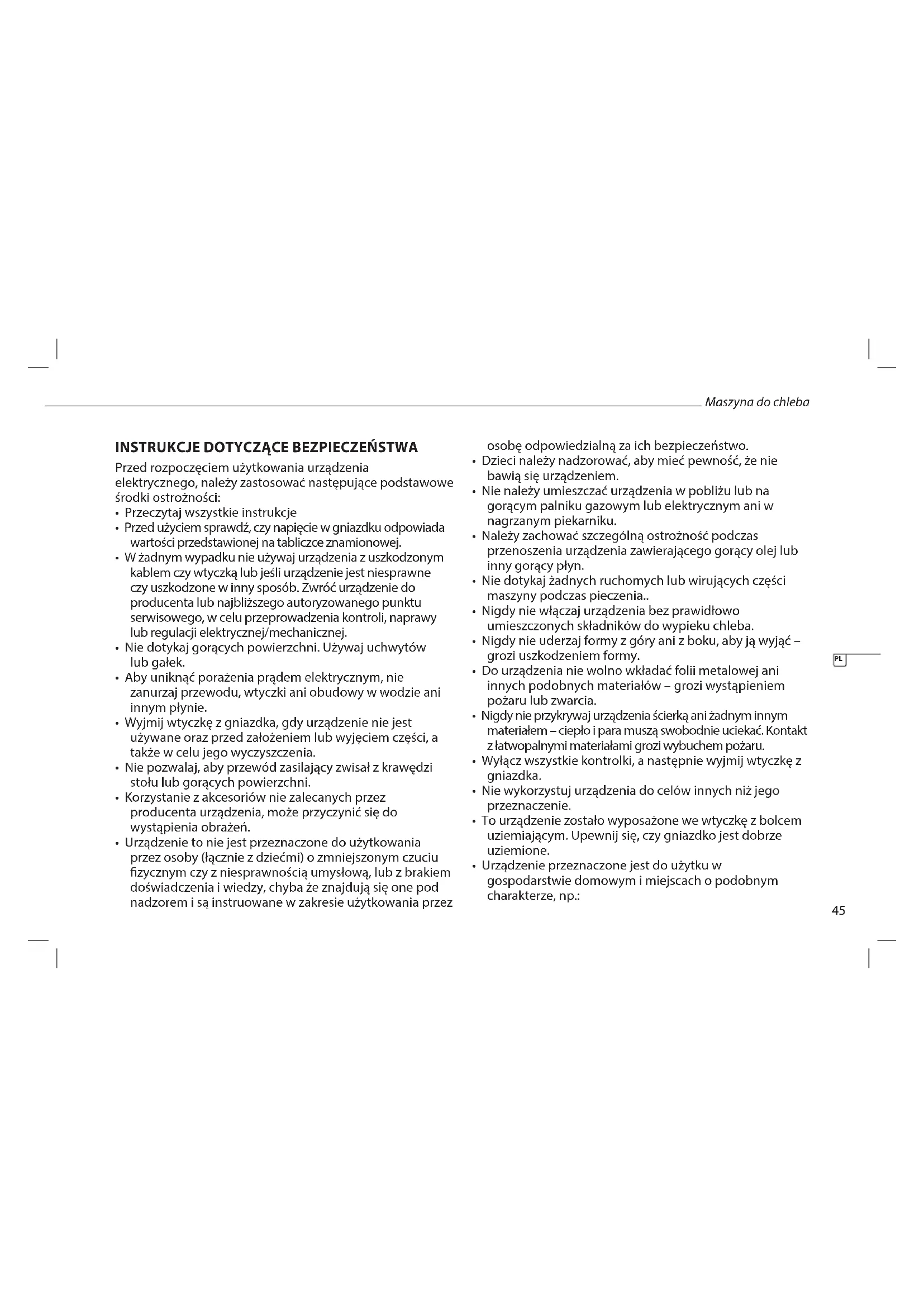 - Nigdy nie włączaj urządzenia bez prawidłowo umieszczonych składników do wypieku chleba.