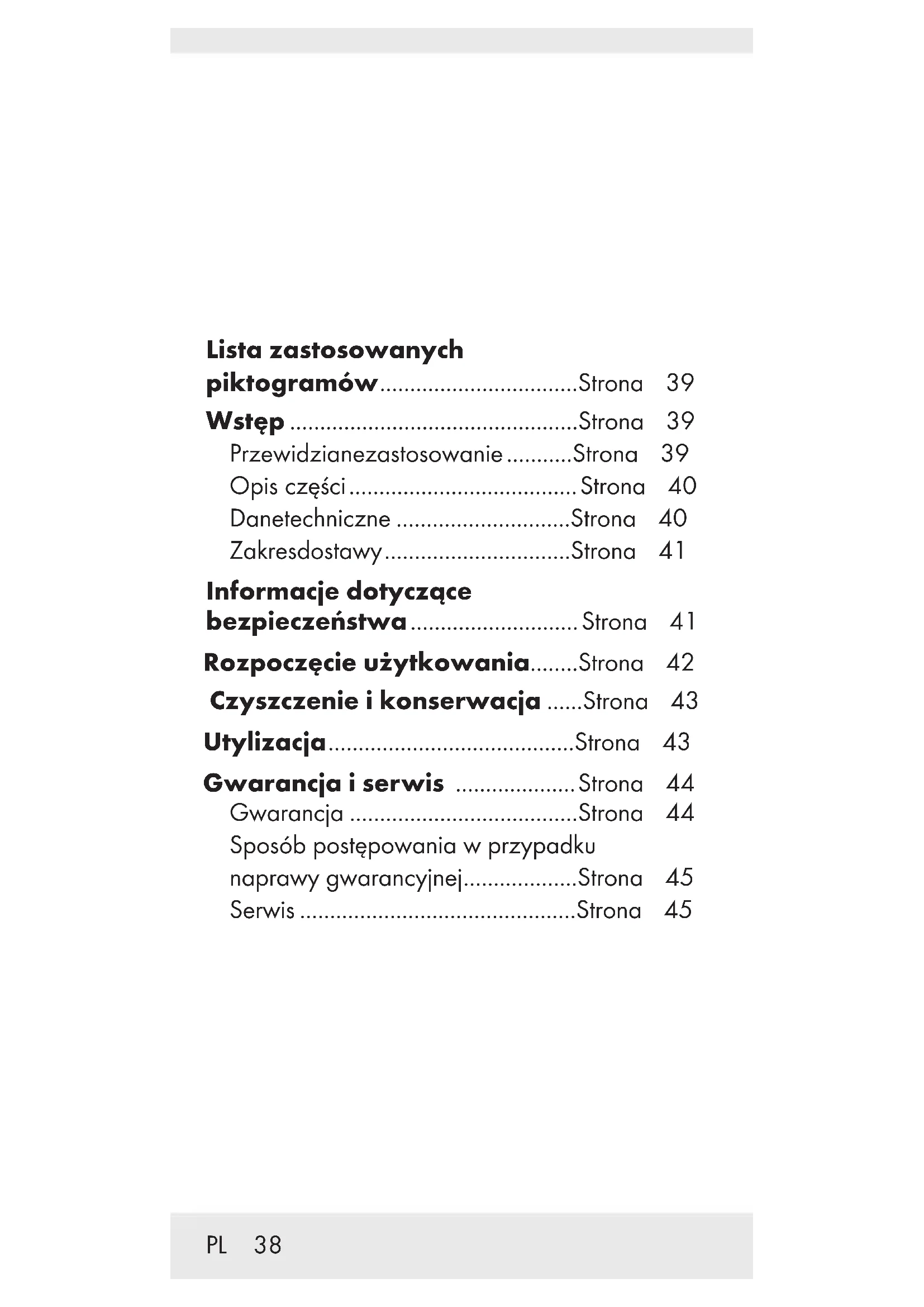 Uwagi dotyczące obsługi i bezpieczeństwa Strona 38