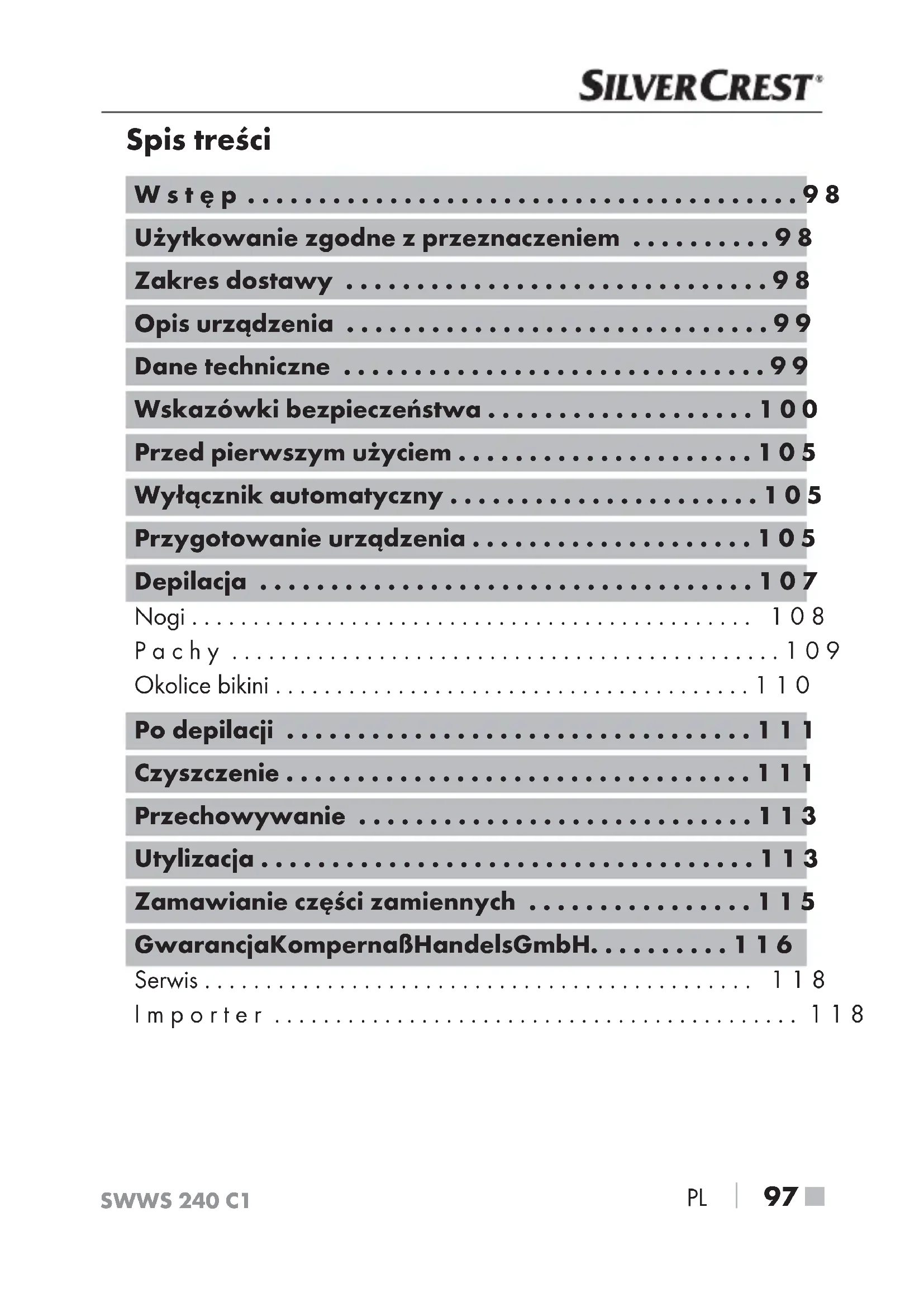 INSTRUKCJA OBSŁUGI SWWS 240 C1 SILVERCREST