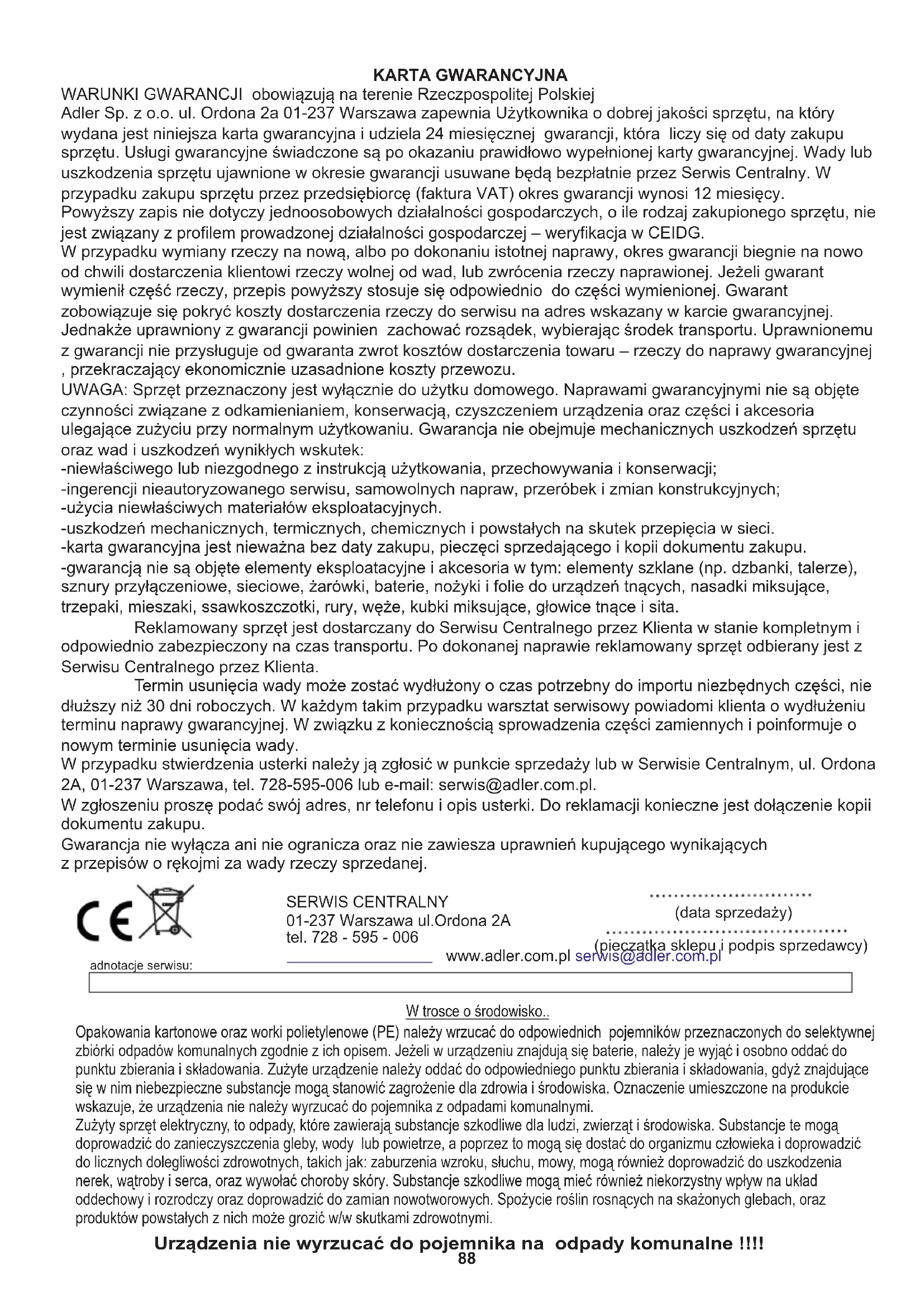 Znajdź bezpłatnie instrukcję urządzenia AD 8154 ADLER w formacie PDF.