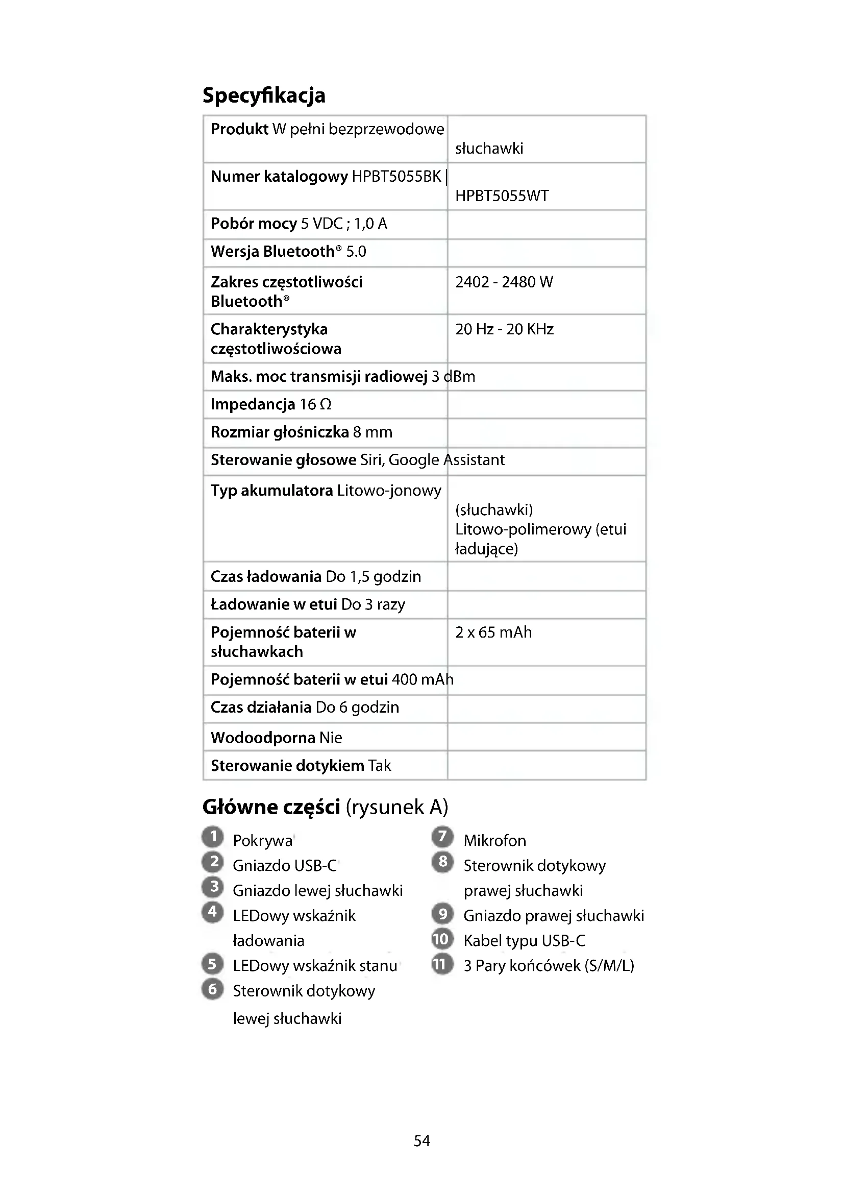 3 Pary końcówek (S/M/L)55 Instrukcje bezpieczeństwa