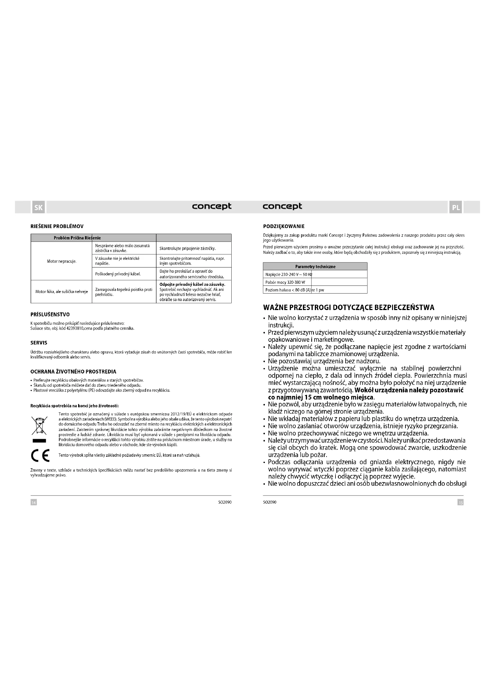 SO2090 - Suszarka do żywności Concept - Bezpłatna instrukcja obsługi