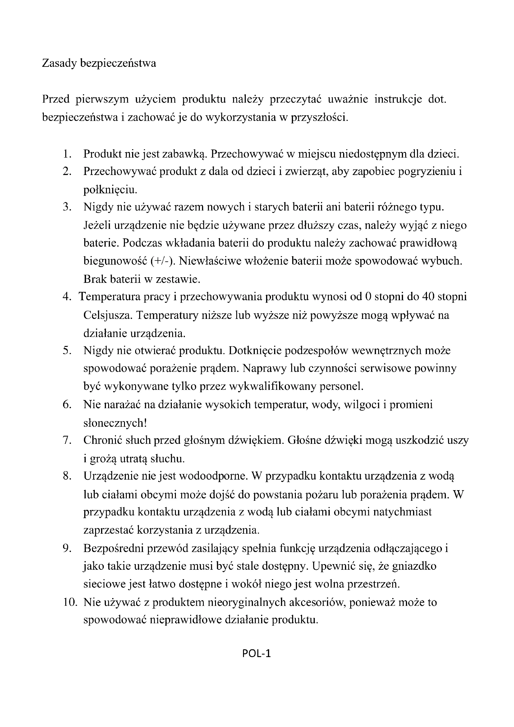 1. Produkt nie jest zabawką. Przechowywać w miejscu niedostępnym dla dzieci.