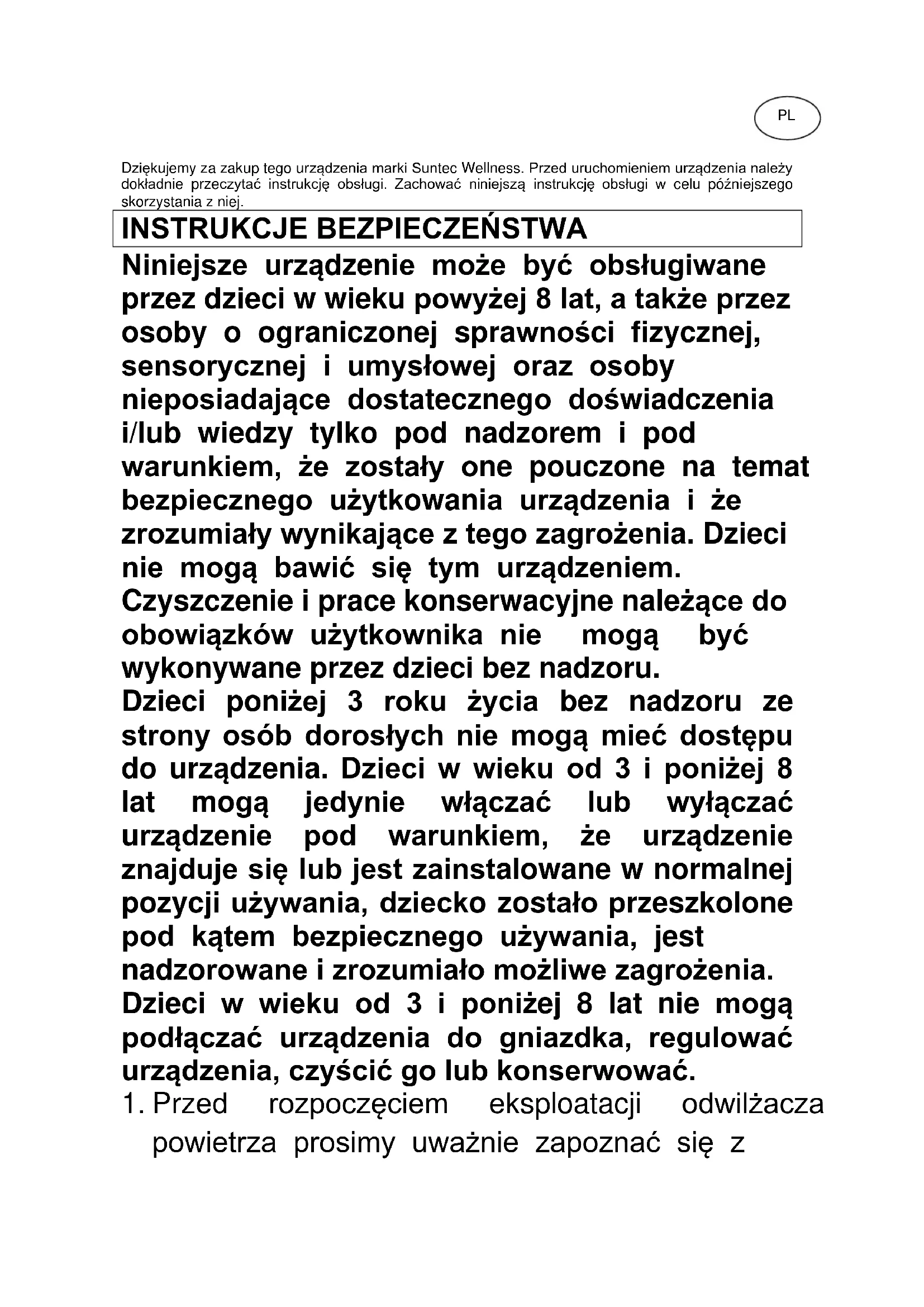 Dziękujemy za zakup tego urządzenia marki Suntec Wellness. Przed uruchomieniem urządzenia należy dokładnie przeczytać instrukcję obsługi. Zachować niniejszą instrukcję obsługi w celu późniejszego skorzystania z niej.