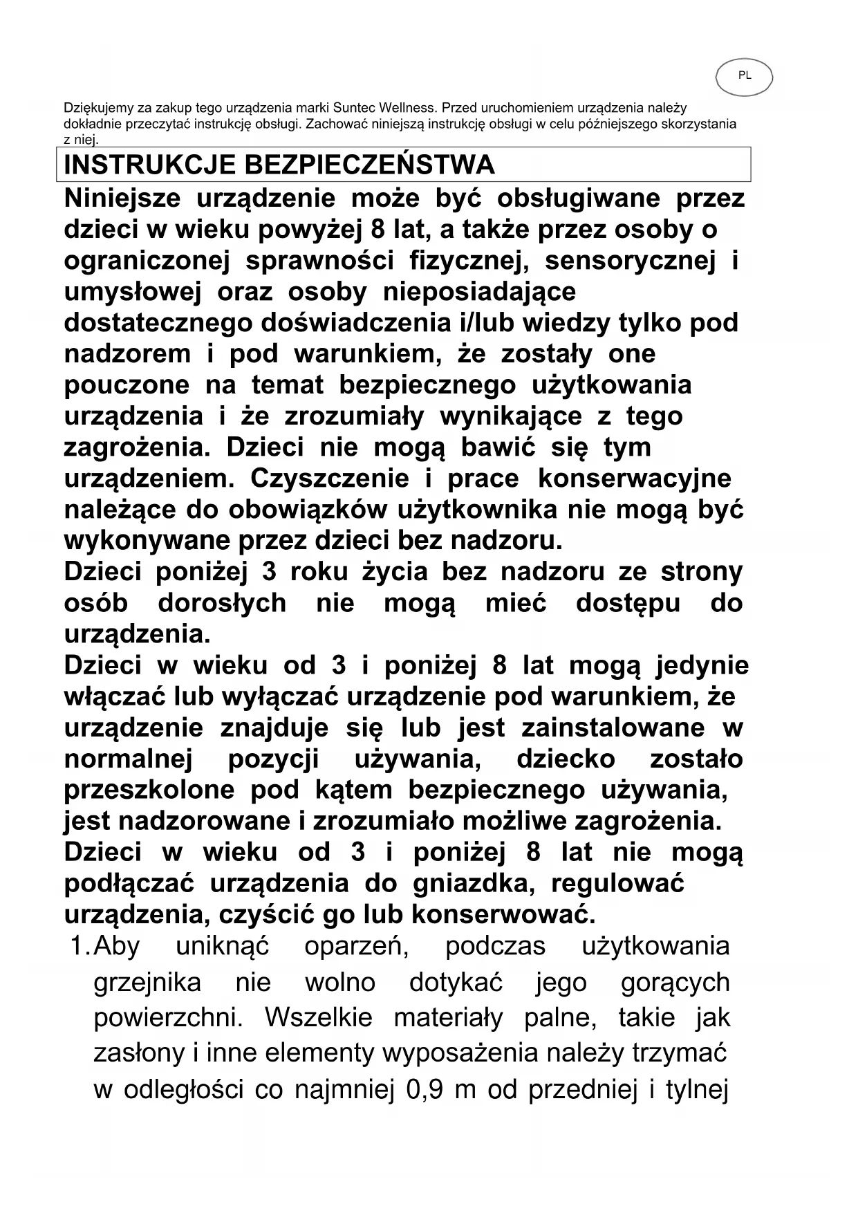 Heat Supreme SUNTEC WELLNESS GMBH / HOLZSTRASSE 2 / 40 221 DÜSSELDORF / GERMANY NOTA SOBRE A PROTEÇÃO DE AMBIENTEDziękujemy za zakup tego urządzenia marki Suntec Wellness. Przed uruchomieniem urządzenia należy dokładnie przeczytać instrukcję obsługi. Zachować niniejszą instrukcję obsługi w celu późniejszego skorzystania z niej.