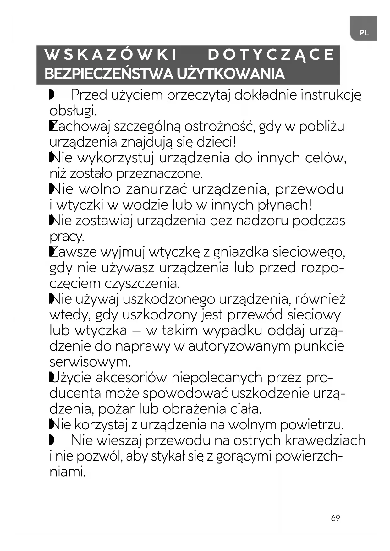 Nie używaj uszkodzonego urządzenia, również wtedy, gdy uszkodzony jest przewód sieciowy lub wtyczka – w takim wypadku oddaj urzą- dzenie do naprawy w autoryzowanym punkcie serwisowym.