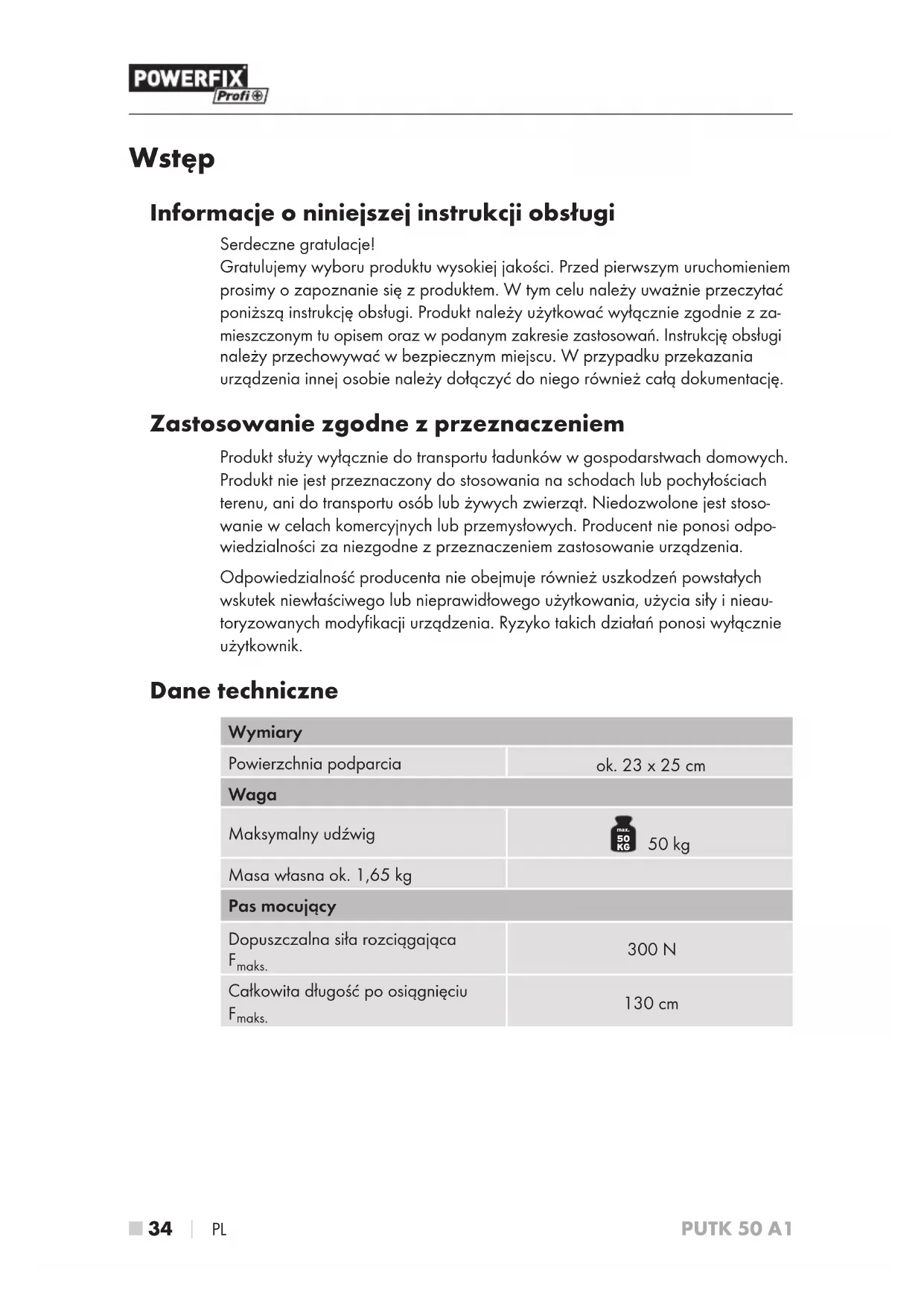 INSTRUKCJA OBSŁUGI PUTK 50 A1 POWERFIX