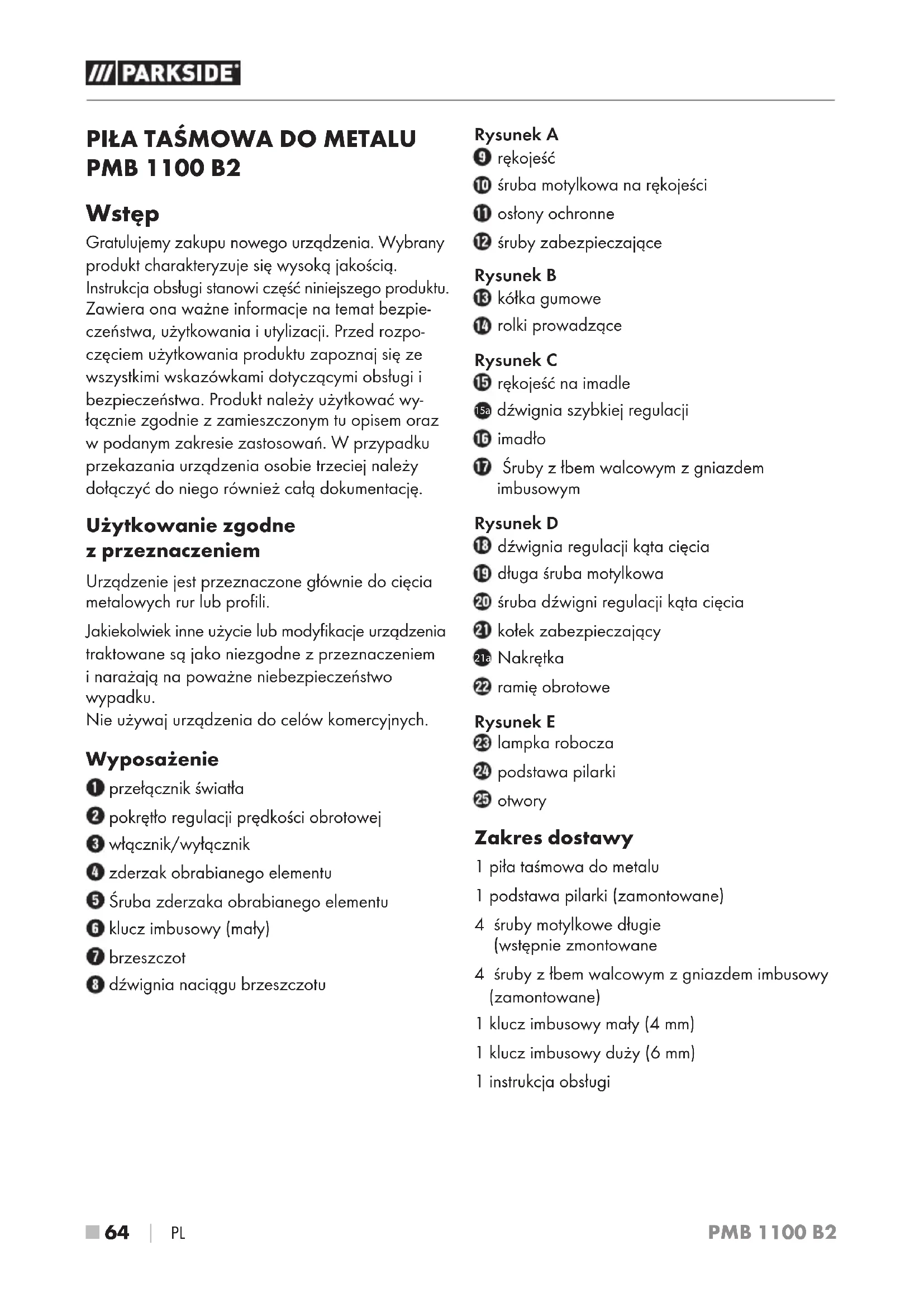 INSTRUKCJA OBSŁUGI PMB 1100 B2 PARKSIDE