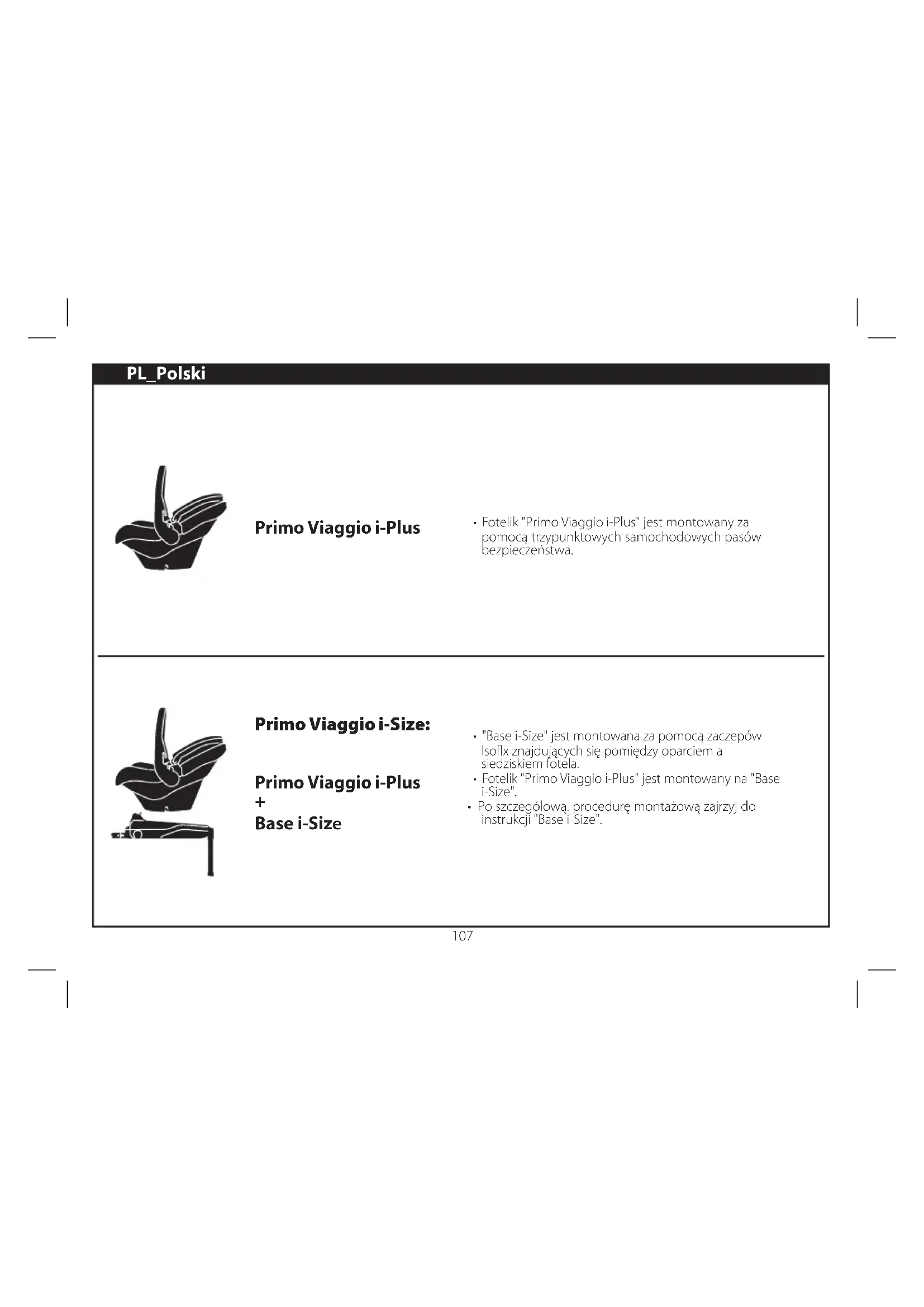 - Po szczególową. procedurę montażową zajrzyj do instrukcji "Base i-Size". PL_Polski Primo Viaggio i-Plus Primo Viaggio i-Size: Primo Viaggio i-Plus