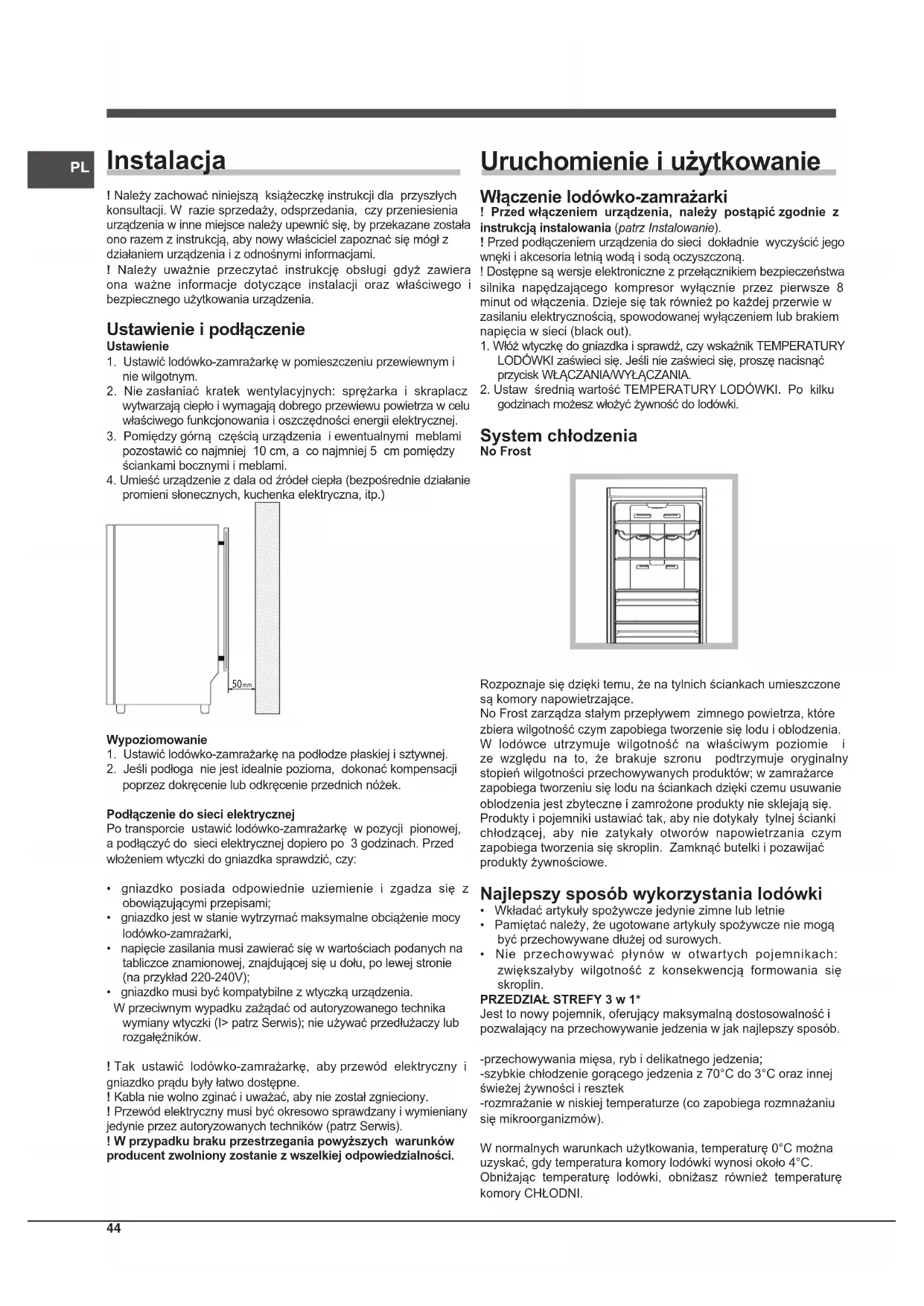 1. Ustawić lodówko-zamrażarkę w pomieszczeniu przewiewnym i
