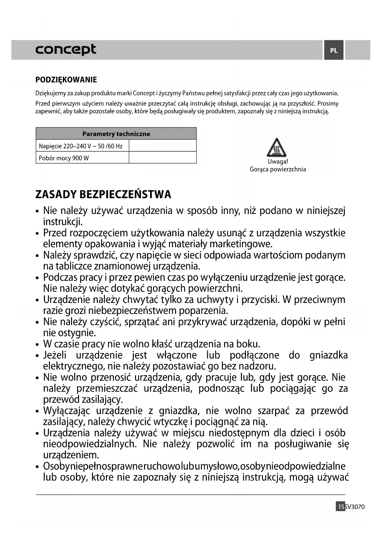 INSTRUKCJA OBSŁUGI SV3070 Concept