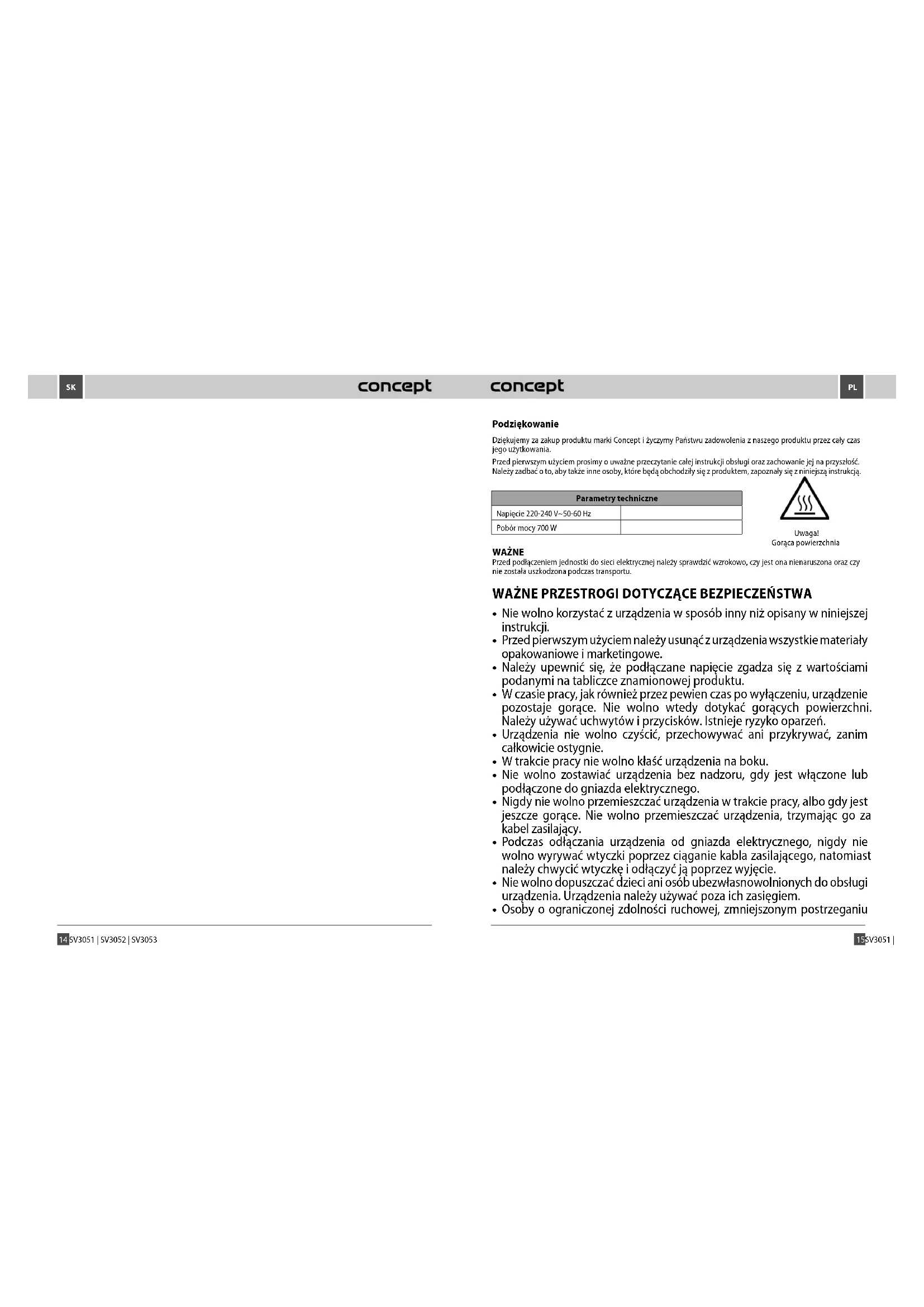 INSTRUKCJA OBSŁUGI SV3053 Concept