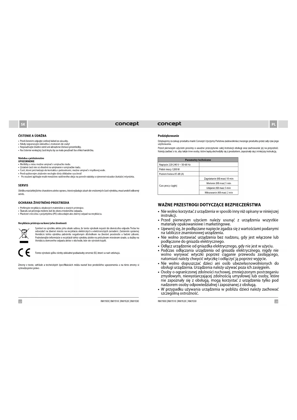 Element RM7010 - Robot kuchenny Concept - Bezpłatna instrukcja obsługi