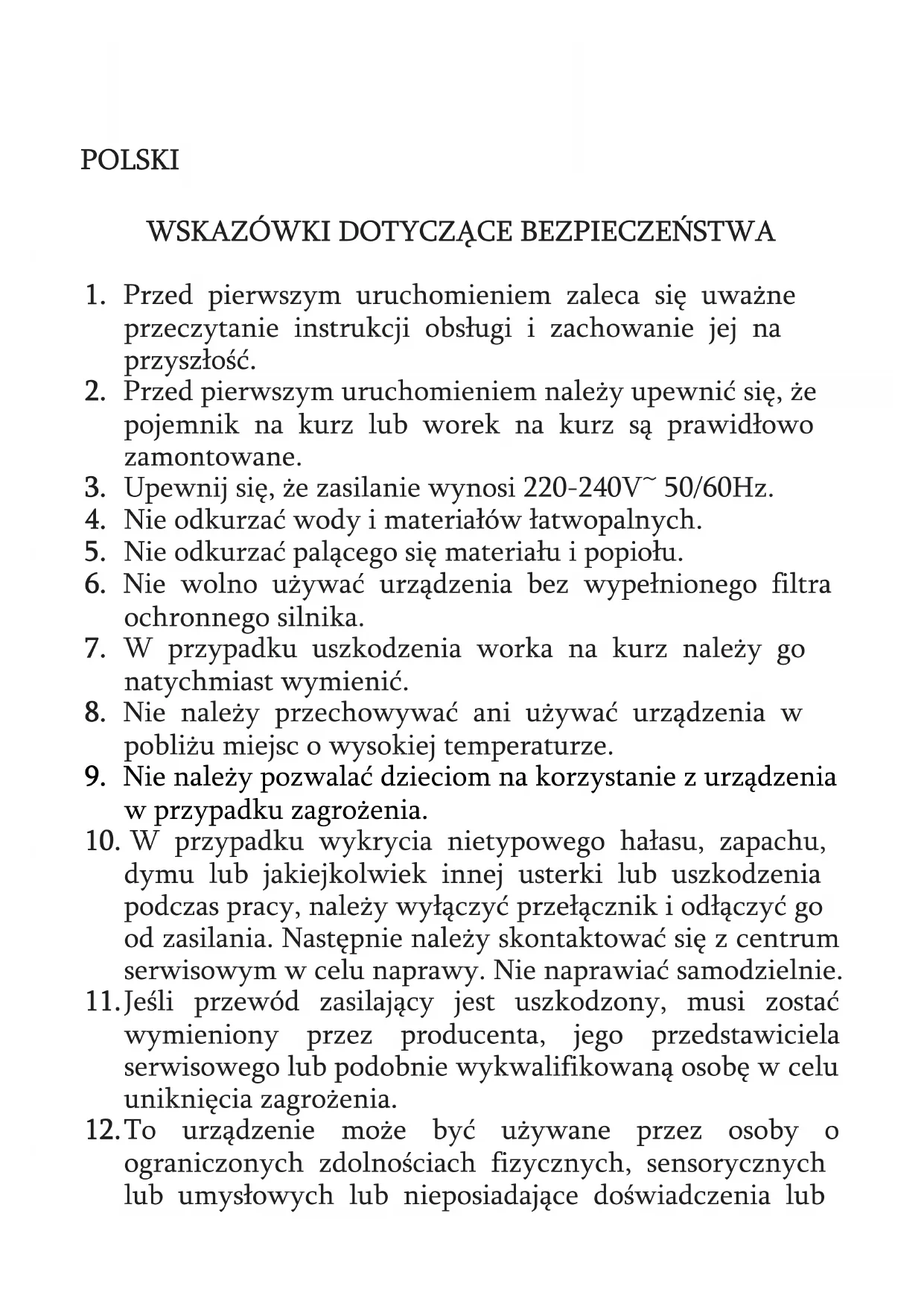 9. Nie należy pozwalać dzieciom na korzystanie z urządzenia