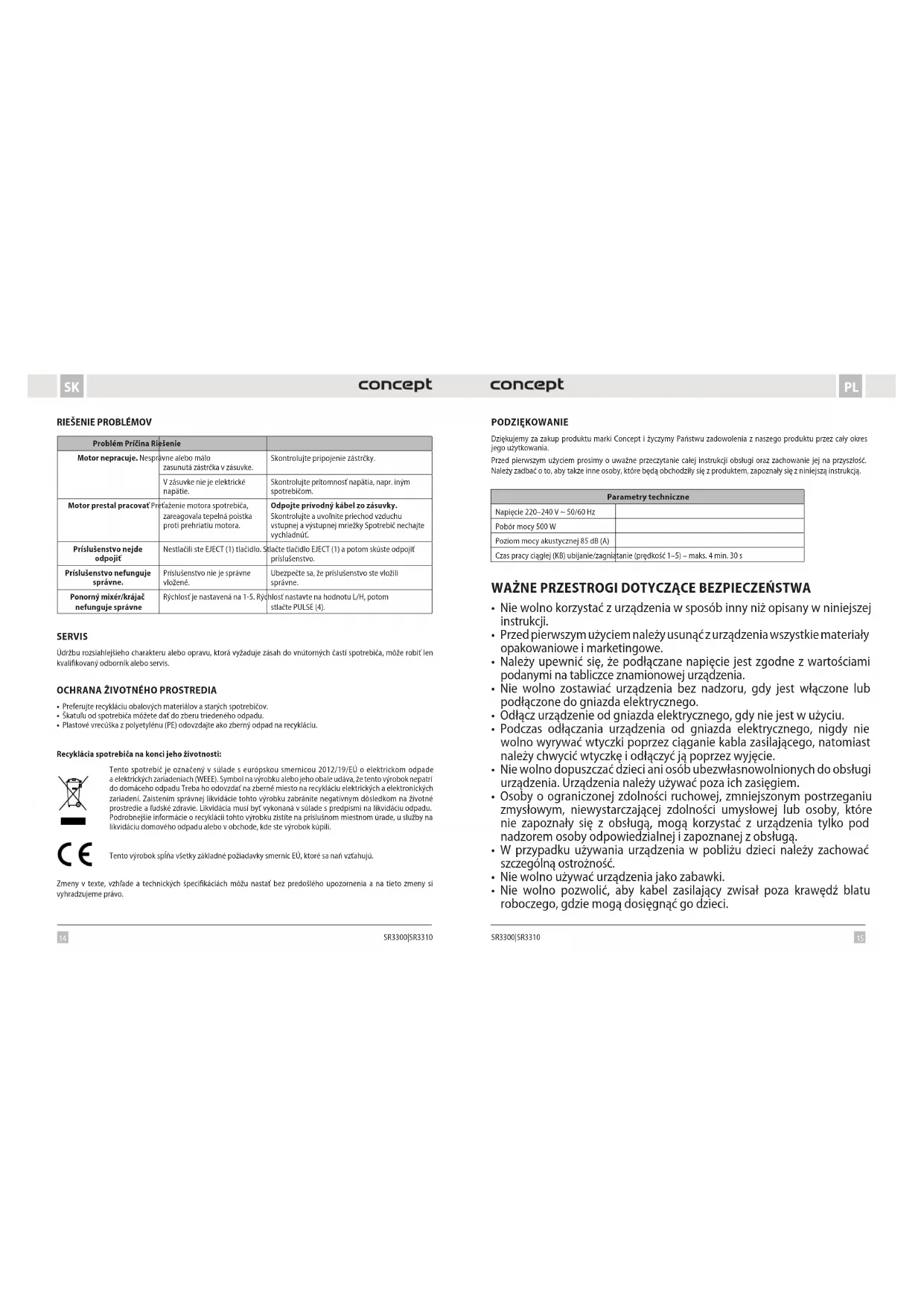 SR3310 - Mikser Concept - Bezpłatna instrukcja obsługi