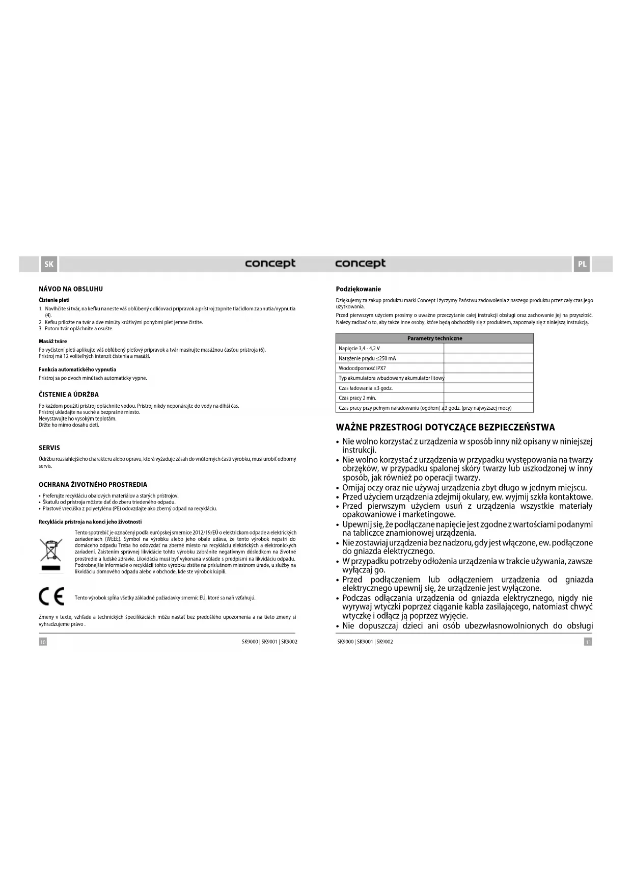 Sonivibe SK9002 - Oczyszczanie twarzy Concept - Bezpłatna instrukcja obsługi
