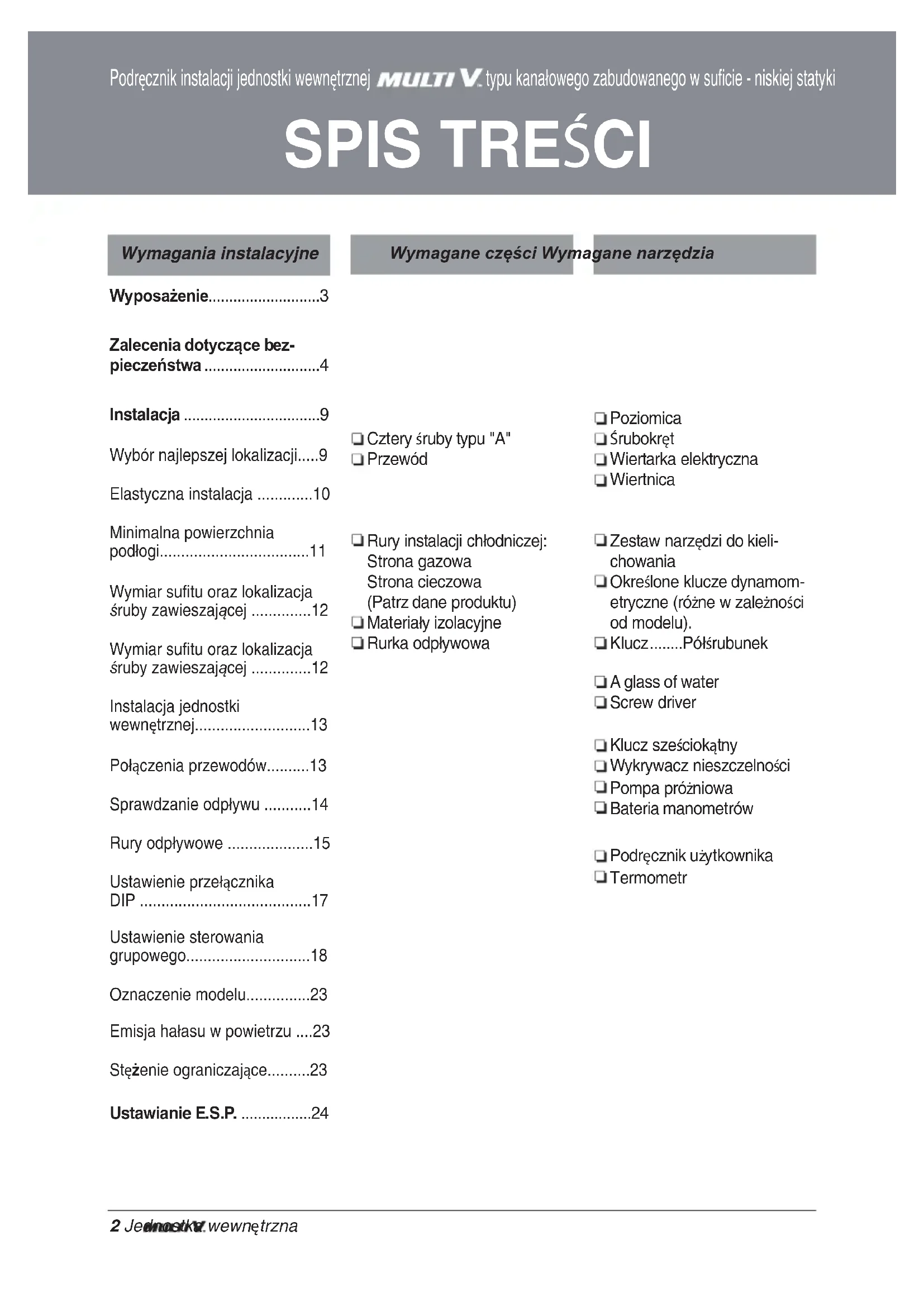 - Instalacja jednostki wewnętrznej p. 13