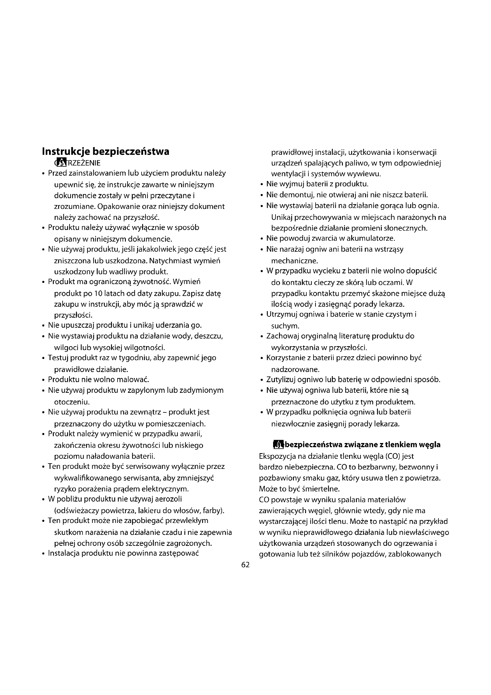 - Ten produkt może nie zapobiegać przewlekłym skutkom narażenia na działanie czadu i nie zapewnia pełnej ochrony osób szczególnie zagrożonych.
