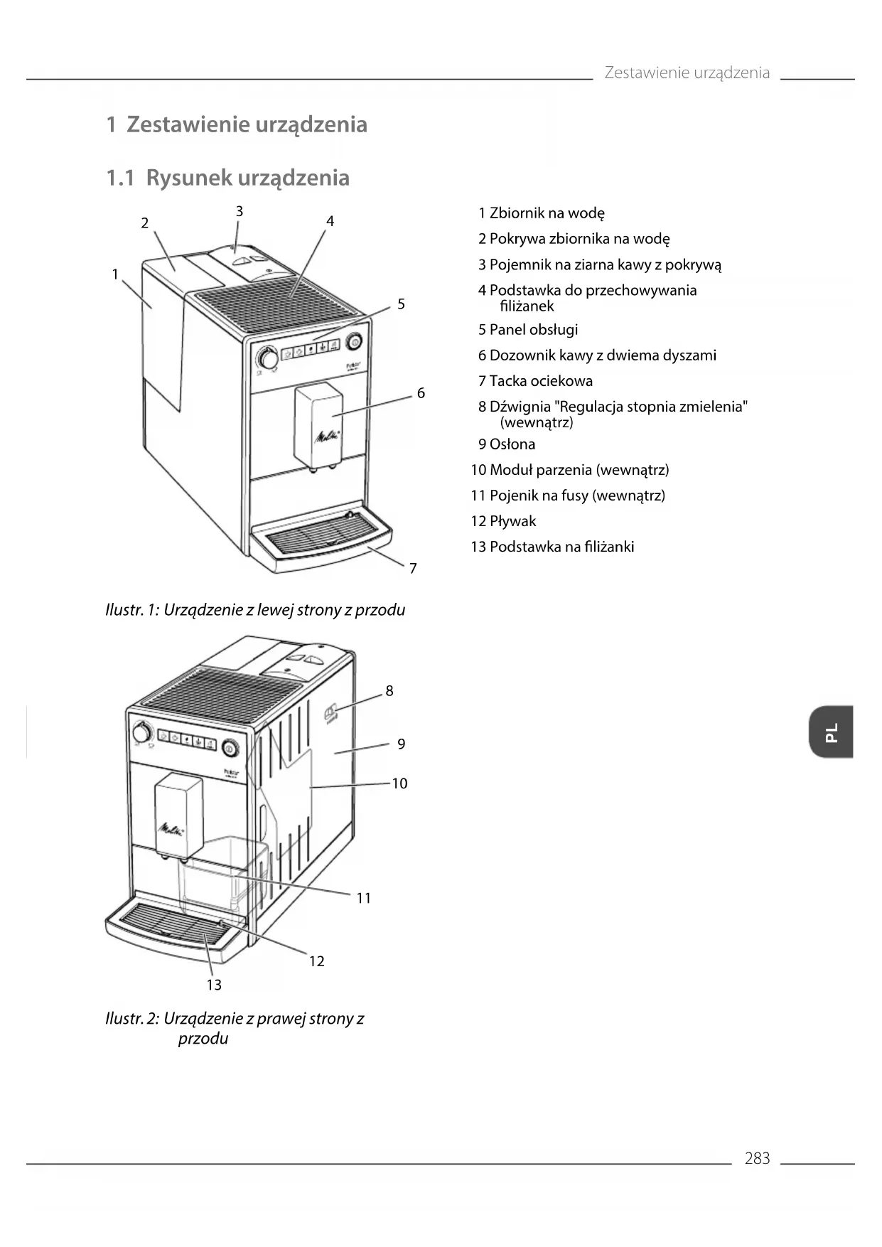 Ilustr. 1: Urządzenie z lewej strony z przodu