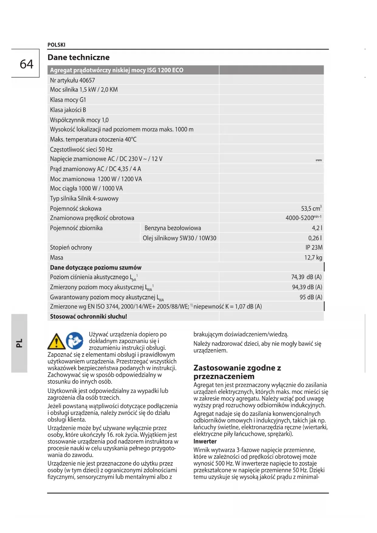 INSTRUKCJA OBSŁUGI ISG 1200 ECO Güde