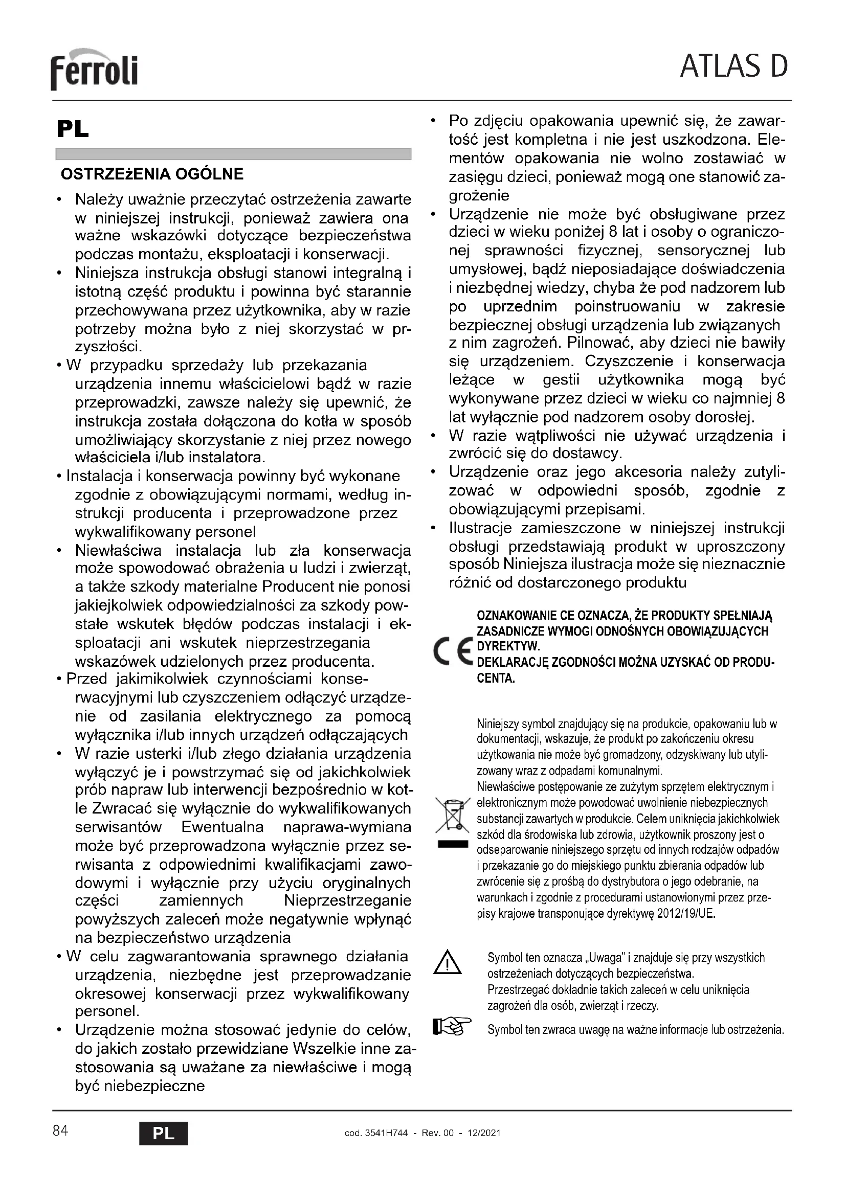 cod. 3541H744 - Rev. 00 - 12/2021 ELPL OSTRZEżENIA OGÓLNE