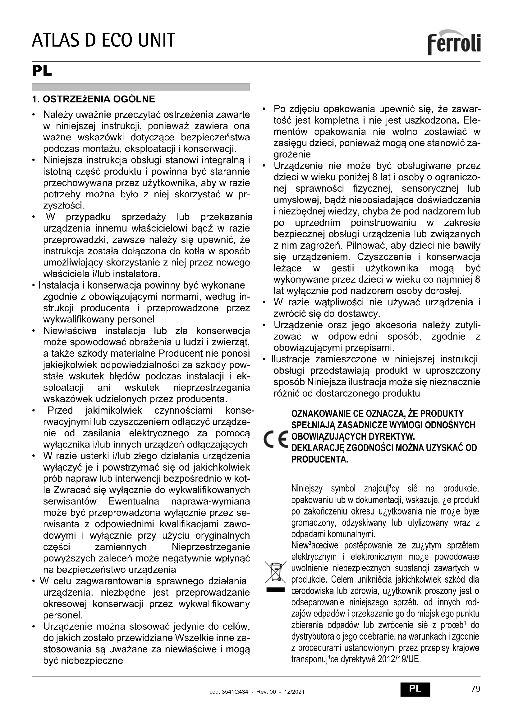 INSTRUKCJA OBSŁUGI Atlas D Eco Unit FERROLI