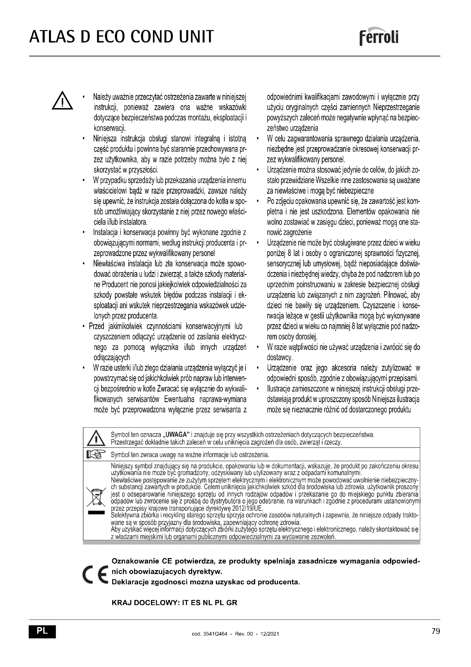 INSTRUKCJA OBSŁUGI Atlas D Eco Cond Unit FERROLI