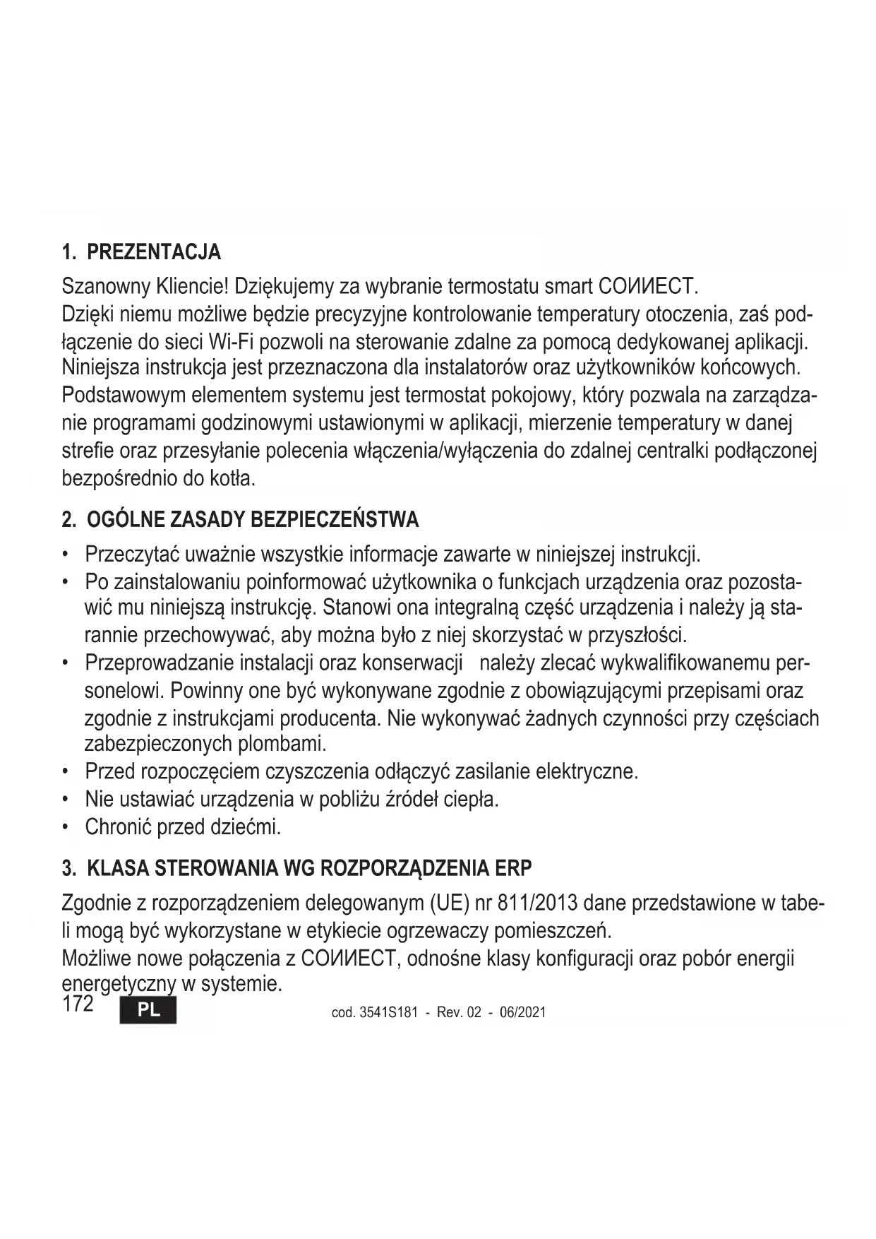 SzanownyKliencie!DziękujemyzawybranietermostatusmartCOИИECT. Dziękiniemumożliwebędzieprecyzyjnekontrolowanietemperaturyotoczenia,zaśpod- łączeniedosieciWi-Fipozwolinasterowaniezdalnezapomocądedykowanejaplikacji. Niniejszainstrukcjajestprzeznaczonadlainstalatoróworazużytkownikówkońcowych. Podstawowymelementemsystemujesttermostatpokojowy,którypozwalanazarządza- nieprogramamigodzinowymiustawionymiwaplikacji,mierzenietemperaturywdanej streeorazprzesyłaniepoleceniawłączenia/wyłączeniadozdalnejcentralkipodłączonej bezpośredniodokotła.