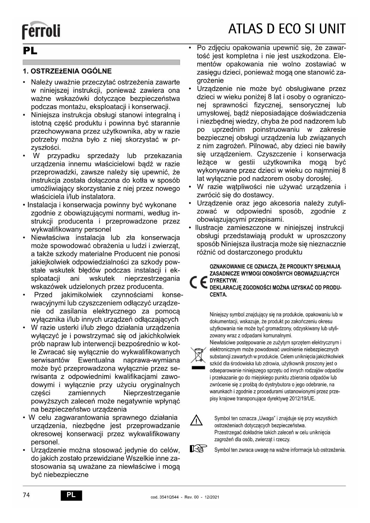 INSTRUKCJA OBSŁUGI Atlas D Eco Si Unit FERROLI